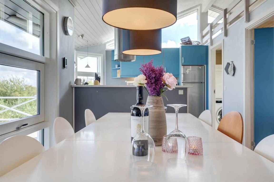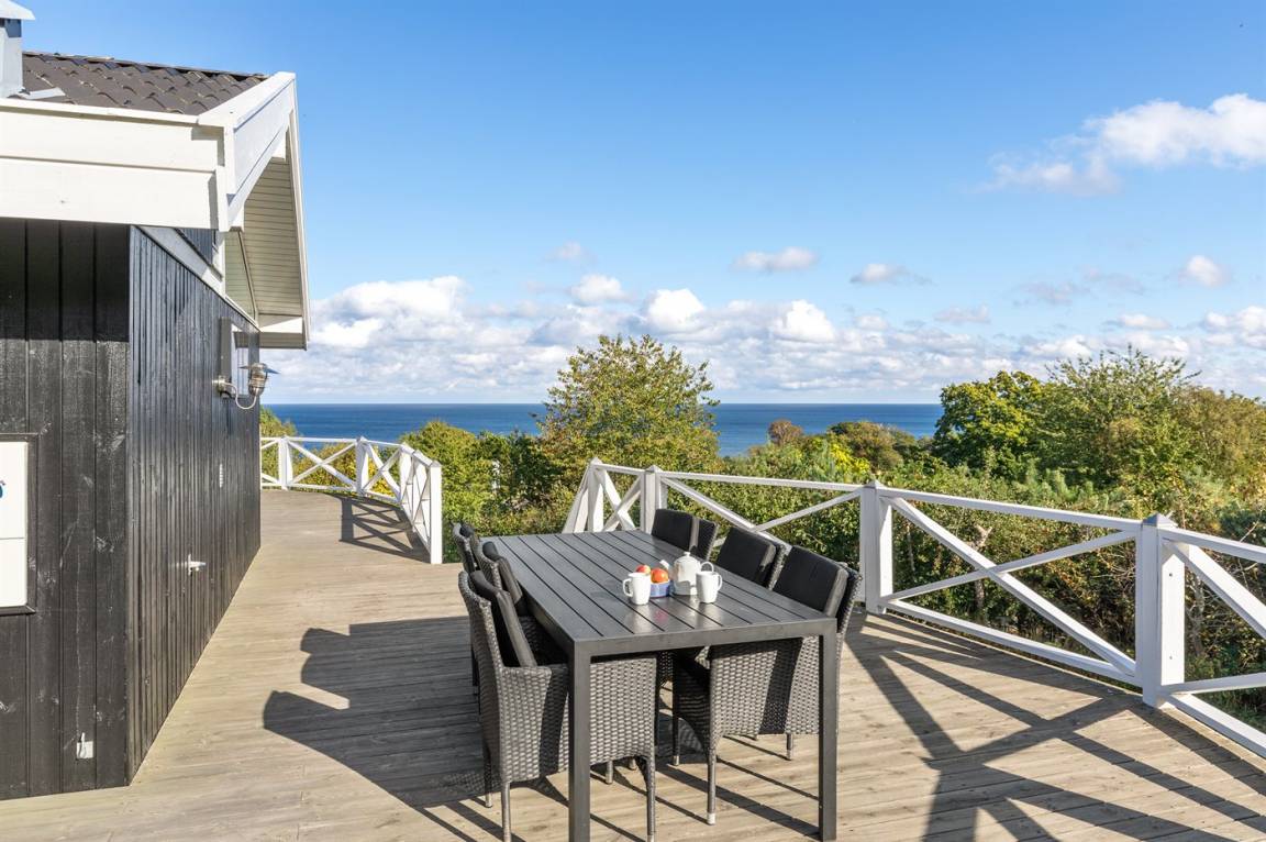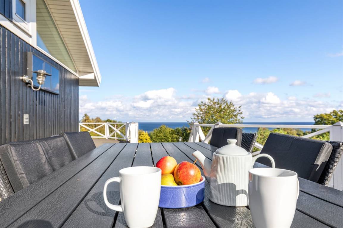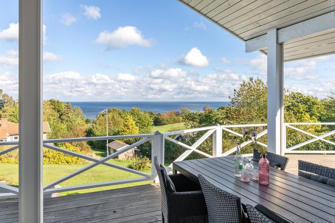 Geschmackvoll eingerichtetes Ferienhaus mit einer einzigartigen Lage und herrlicher Panoramaaussicht auf die Ostsee. Das Haus ist im Winkel gebaut und aus Qualitätsmaterialien aufgeführt. Von der 2,5 m über der Ebene liegenden Terrasse, dem Wohnzimmer und der Küche haben Sie eine wundervolle Aussicht auf das Meer. Zum Haus gehört ein Gästehaus, das mit 2 der insgesamt 10 Schlafplätze eingerichtet ist.