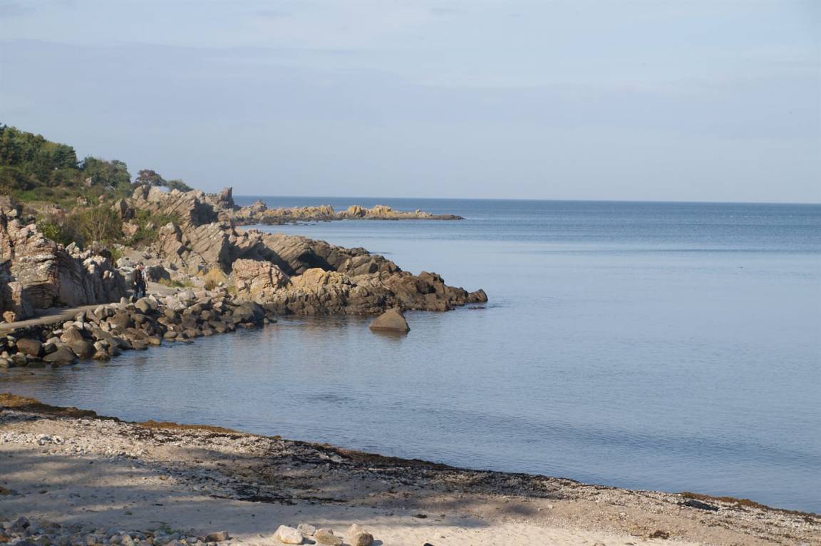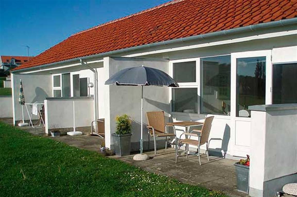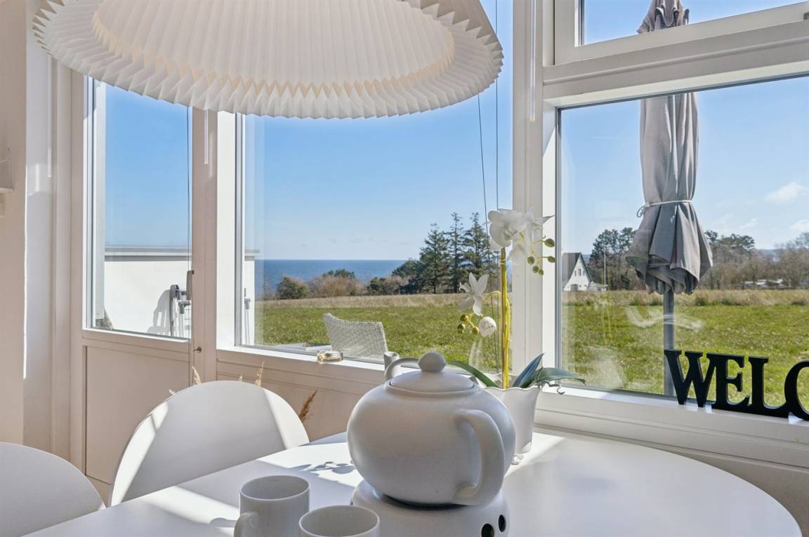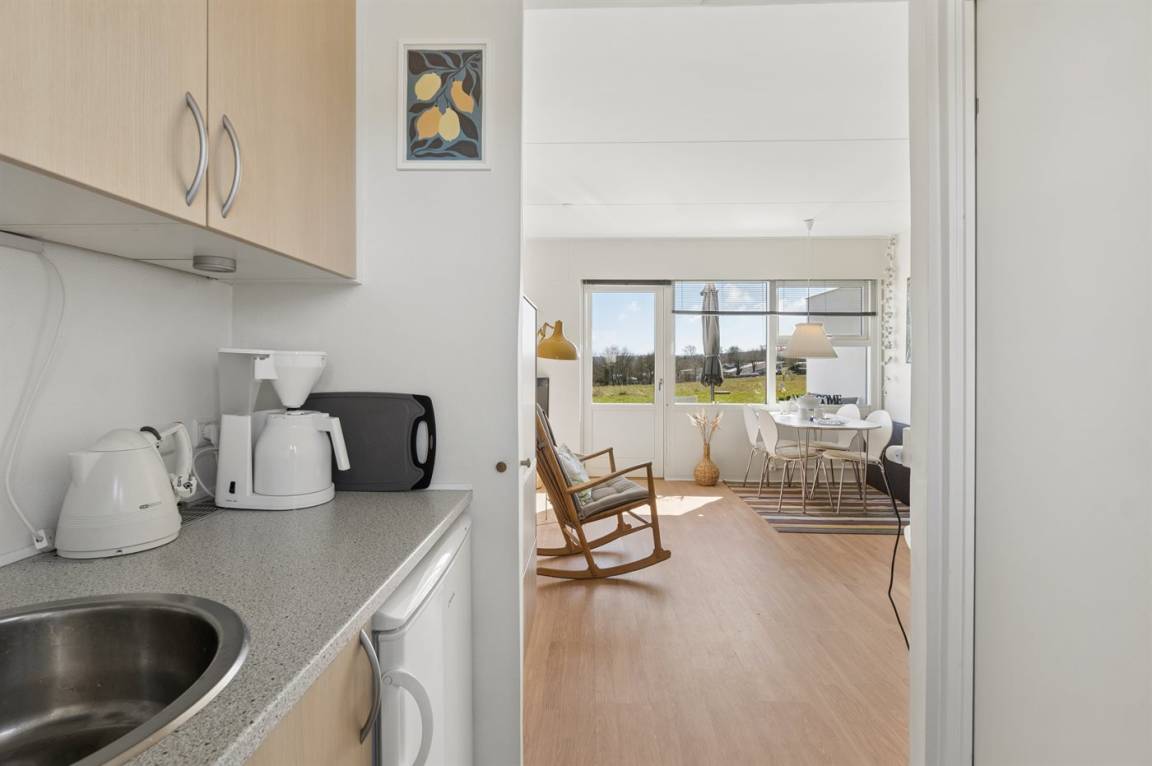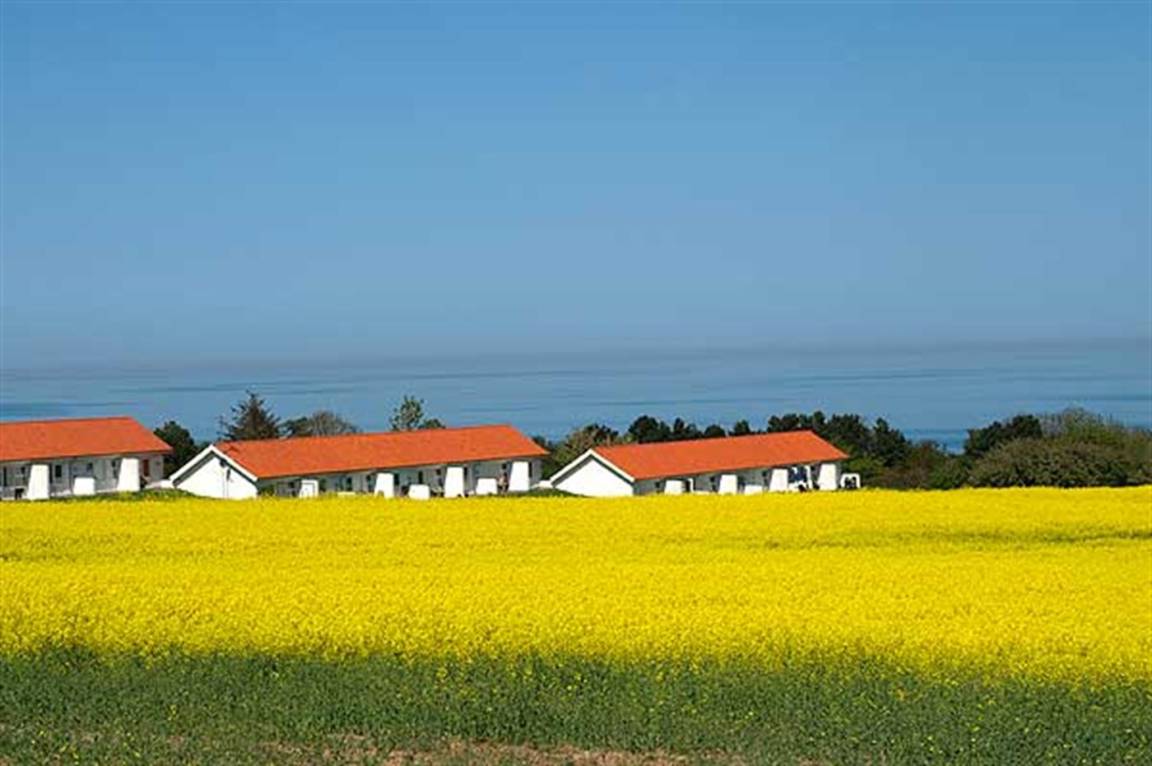 Helle Ferienwohnung mit 27 Quadratmetern, gelegen mit einem schönen Blick über die Felder im sanft abfallenden Gelände und über die Ostsee mit Christiansø in der Ferne.