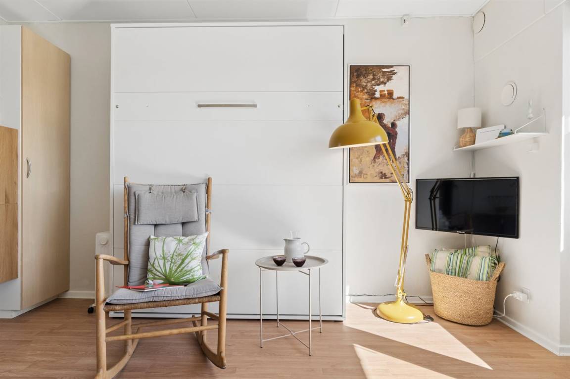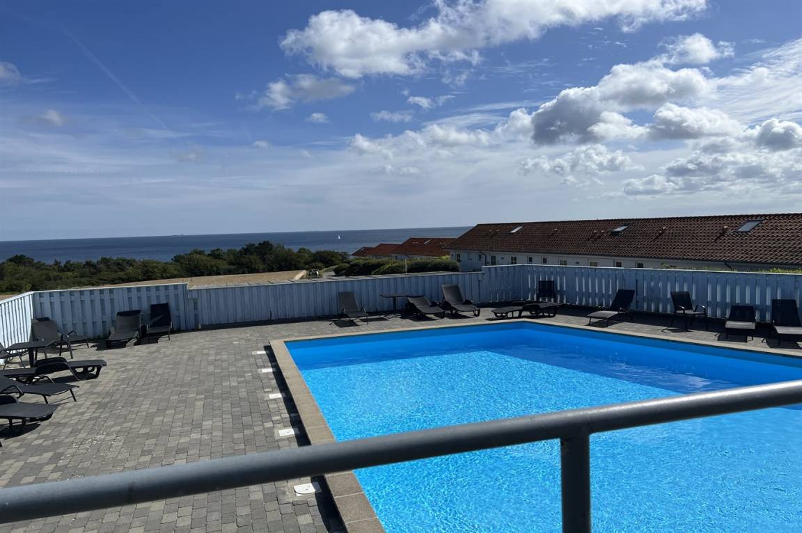 Von der kleinen, abgeschirmten Terrasse aus kannst du den Lauf der Natur und den Weg der Sonne über den Himmel verfolgen. Im großen gemeinsamen Außenpool kannst du dich an warmen Sommertagen mit einem erfrischenden Bad abkühlen – oder du gehst hinunter zum Sandstrand in Sandkås und genießt die Wellen der Ostsee.