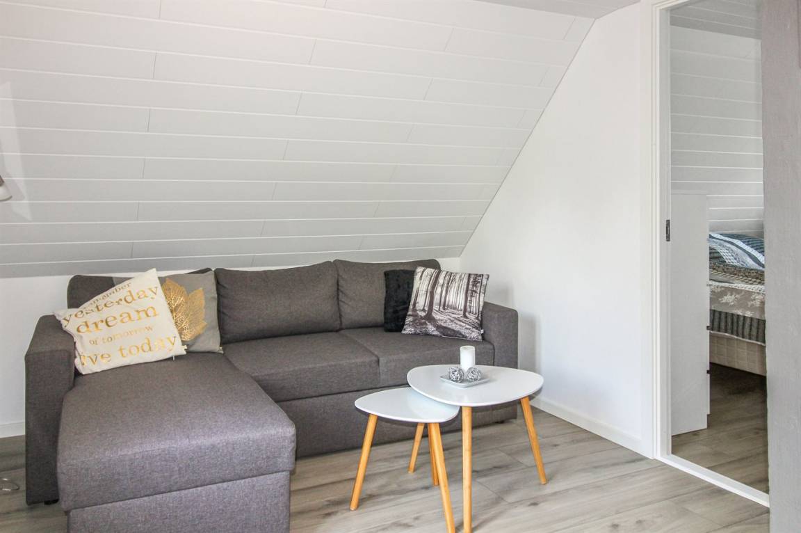Ein schönes und gut gelegenes Ferienhaus auf dem Land – in ruhiger Umgebung und mit Aussicht über Wald und Felder. Übrigens: Die Schlafplätze auf der Schlafcouch befinden sich in einen Vorraum im Obergeschoss.
