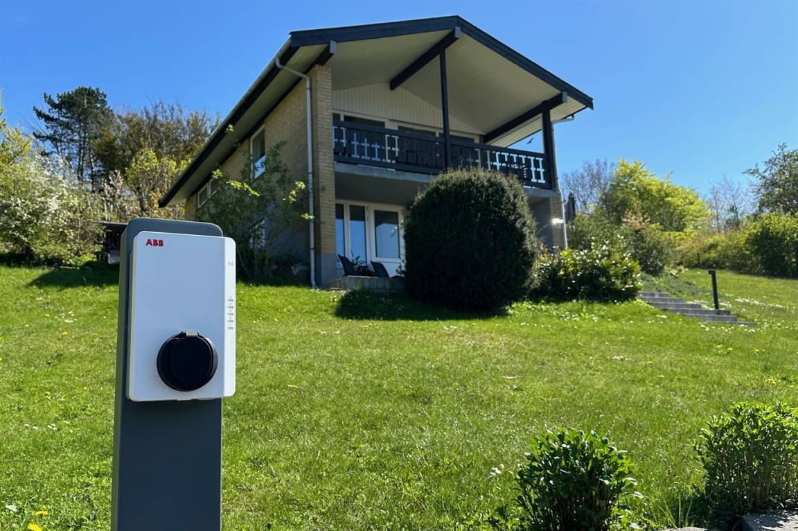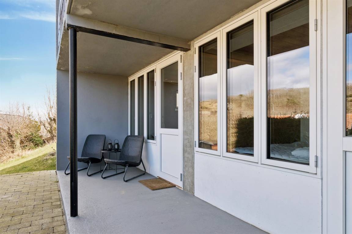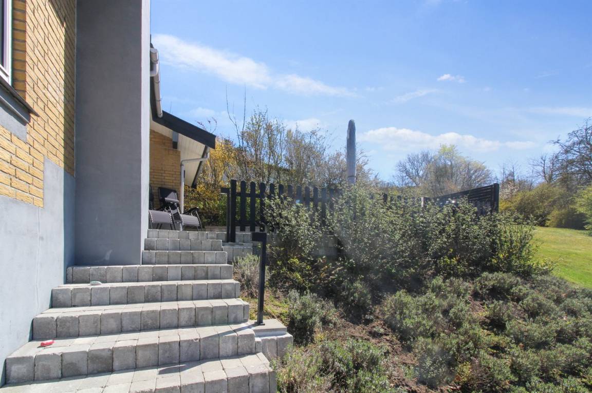 Zum Haus gehört eine neue, 45 m² große Terrasse (2019) mit Aussicht auf das Naturschutzgebiet Hammerknuden. Es ist ein Ladestecker für Elektroautos installiert, Ladestecker Typ 2 und mit einer Ladeleistung von 11 kW. Asphaltierte Einfahrt.