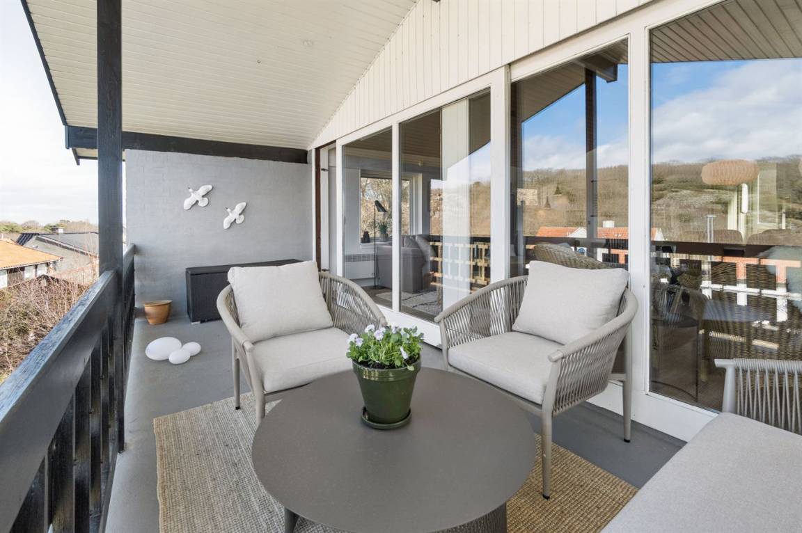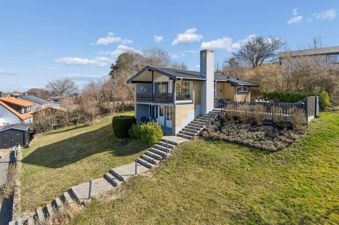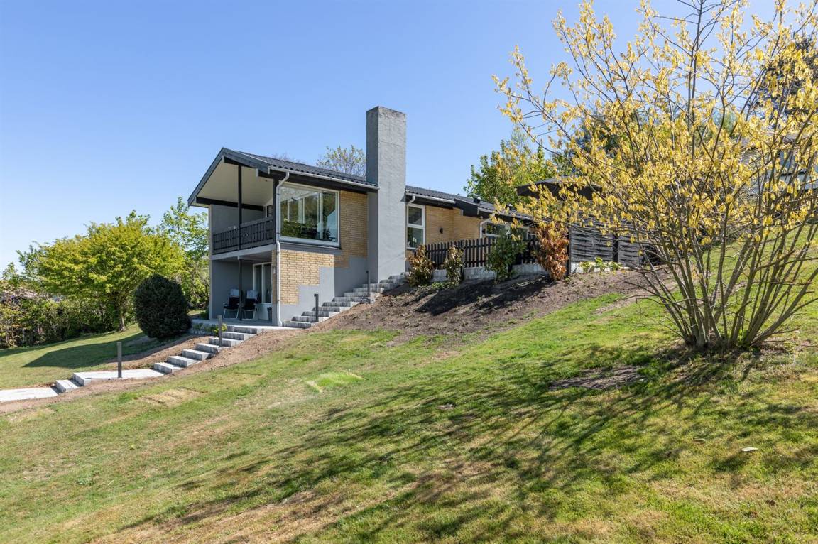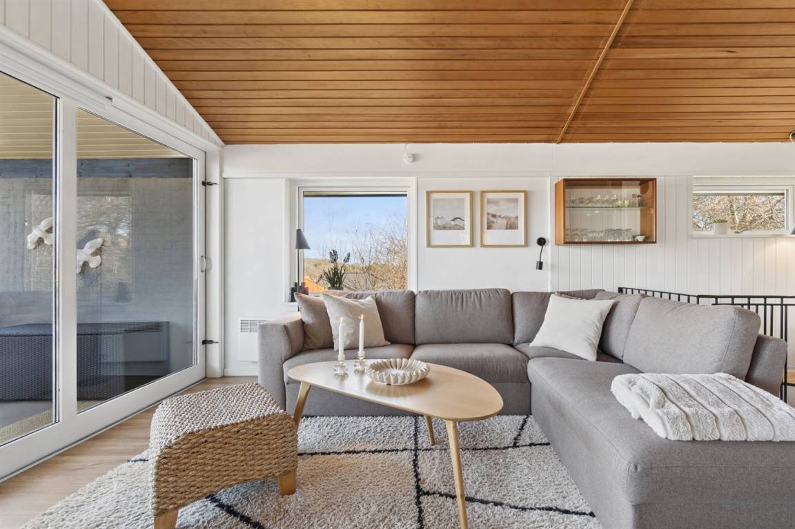Inmitten besonders schöner Natur, auf einem 1.000 m² großen Naturgrundstück liegt dieses Ferienhaus – in 2 Etagen gebaut. Von dem großen überdachten Balkon (12 m²) haben Sie Panoramaaussicht auf das beeindruckende Naturschutzgebiet Hammerknuden.