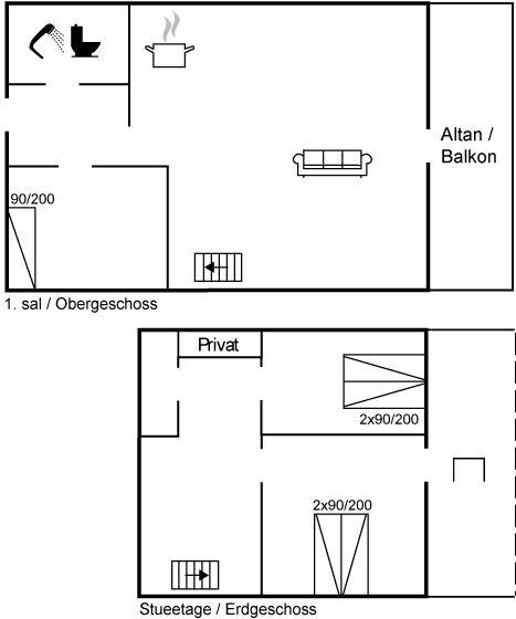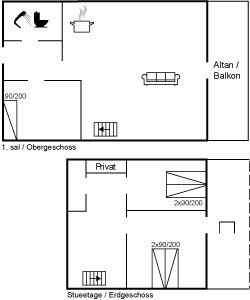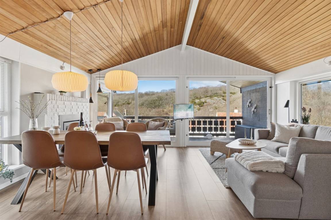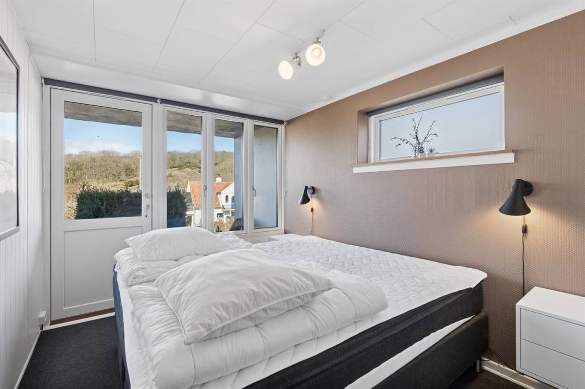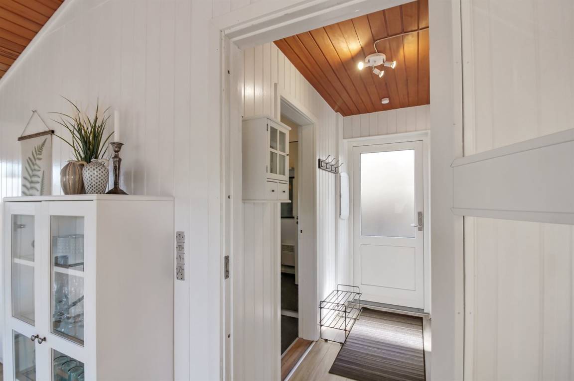 Das 110 m² große Ferienhaus, 2019 renoviert, eignet sich für 5 Personen. Das Ferienhaus ist wie folgt eingerichtet: 2 Schlafzimmer und Flur im Erdgeschoss. Diele, Schlafzimmer mit Einzelbett sowie kombinierte Küche/Wohnzimmer mit phantastischer Aussicht im Obergeschoss. Alle Schlafzimmer sind mit eigenem Schrank eingerichtet. Badezimmer mit Fußbodenheizung, Duschnische und Toilette.