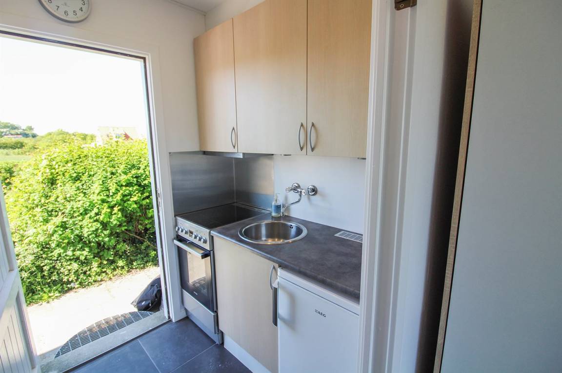Nur 500 m von der Küste entfernt inmitten einer malerischen Landschaft liegt diese Ferienunterkunft mit ungestörtem Panorama-Meerblick. Sowohl von der Terrasse als auch vom Wohnzimmer dieser kleinen, hübsch renovierten Ferienunterkunft von 28 m² können Sie in der Ferne Gudhjem und Christians Ø erkennen. Hier können Sie Ihren Morgenkaffee und wunderschöne Sonnenaufgänge genießen, während die Segelboote auf der Ostsee vorbeigleiten. Die Ferienunterkunft wurde 1972 erbaut, 2020 renoviert und eignet sich für 2 Personen. Die Unterkunft ist gut konzipiert und verfügt über ein Wohnzimmer mit 4 Sitzplätzen am Esstisch, 2 gemütlichen Sesseln und viel Stauraum. Die funktionale Küche ist mit 4 elektrischen Kochplatten, einem Umluftbackofen, einem Kühlschrank mit Gefrierfach von 10 l und reichlich Tellern, Gläsern, Besteck etc. ausgestattet. Das Badezimmer verfügt über eine hübsche, moderne Duschnische, eine Toilette, Fußbodenheizung, Handtuchwärmer und viel Platz für Toilettenartikel im Waschbeckenunterschrank. Zur Ferienunterkunft gehört eine hübsche offene Südostterrasse von 10 m² mit einer Kaffeetischgarnitur. Parkmöglichkeiten befinden sich in unmittelbarer Nähe zur Eingangstür. Von der Ferienunterkunft sind es 300 m bis zum nächsten Kiosk, 1,6 km bis zu Netto und Super Brugsen, 1,5 km zur traditionellen Bornholmer Räucherei und 10 km bis zum Golfplatz. Es steht ein 32-Zoll-Fernseher mit mindestens 4 dänischen Sendern zur Verfügung. Radio. CD-Player. Das hauseigene WLAN kann kostenlos genutzt werden. Den Gästen der Unterkunft steht im Zeitraum vom 15. Juni bis zu 15. September kostenlos ein gemeinschaftlich nutzbarer, beheizter Pool zur Verfügung.