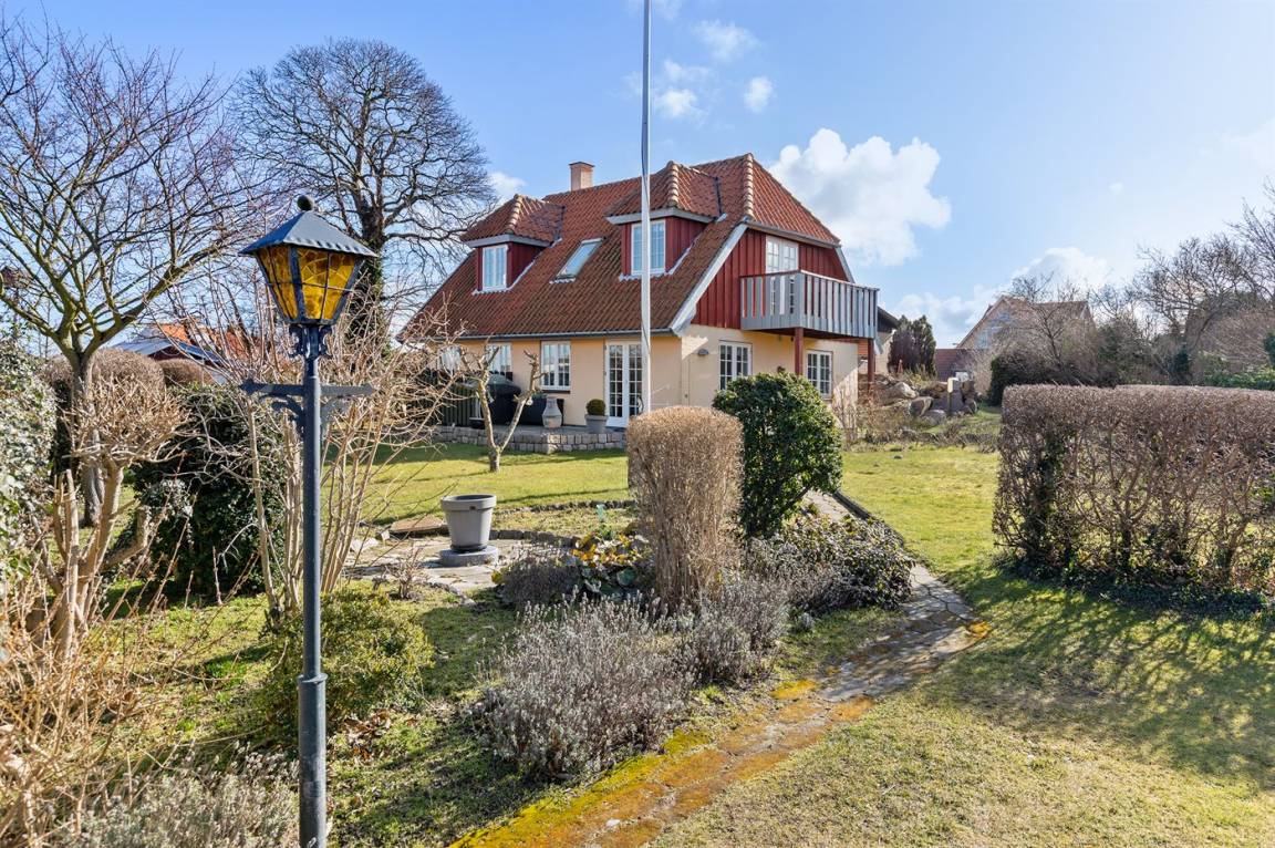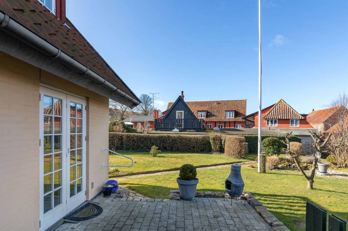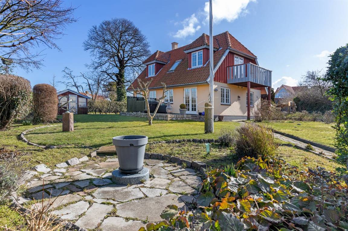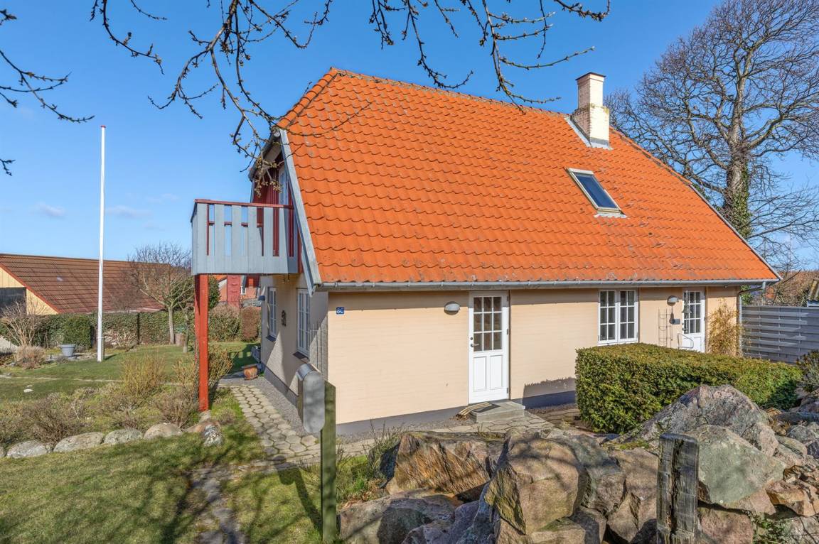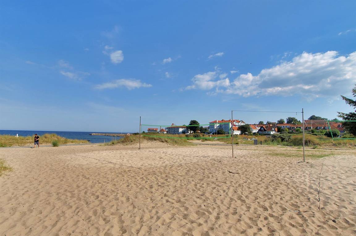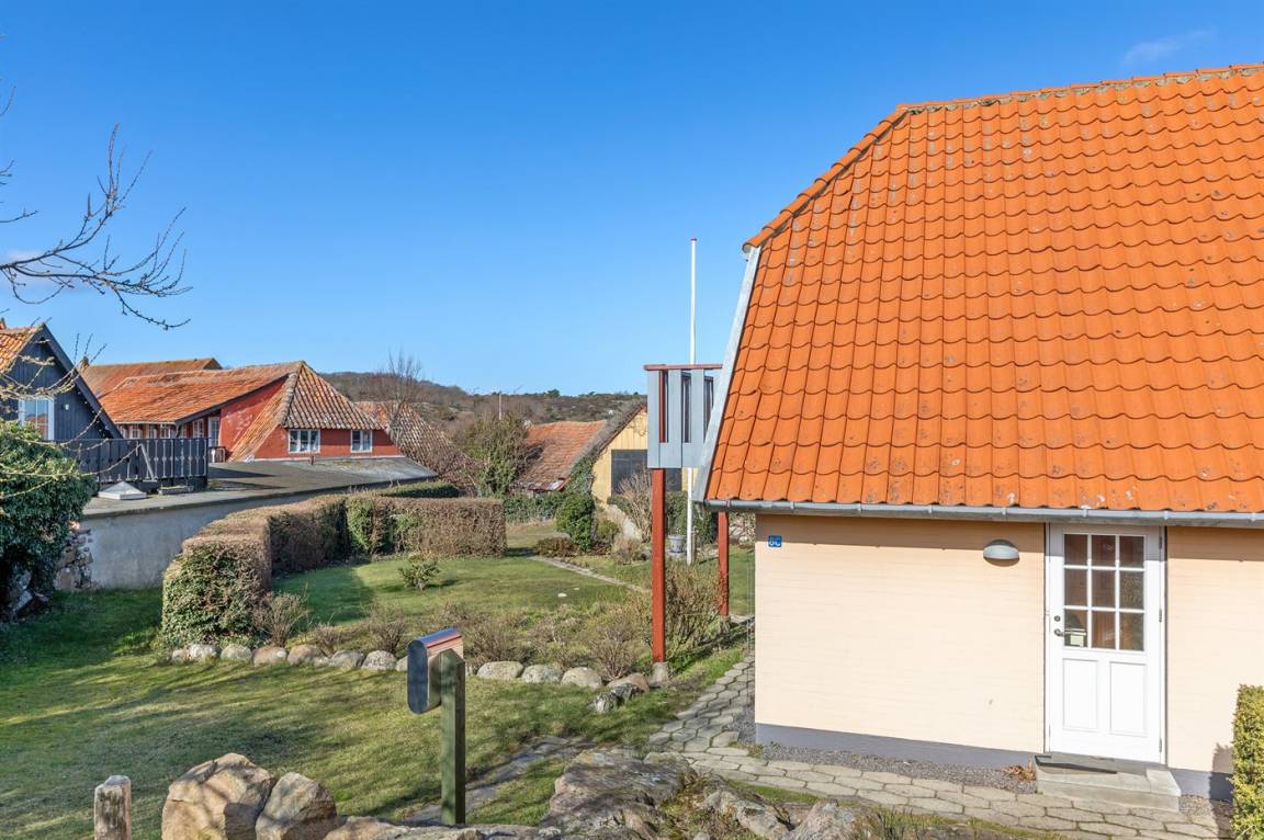Ein besonders gut gelegenes Ferienhaus mitten in Sandvig - in der Nähe des Sandstrandes, der großen Naturgebiete mit Hammerknuden, Opalsøen und Langebjerg.