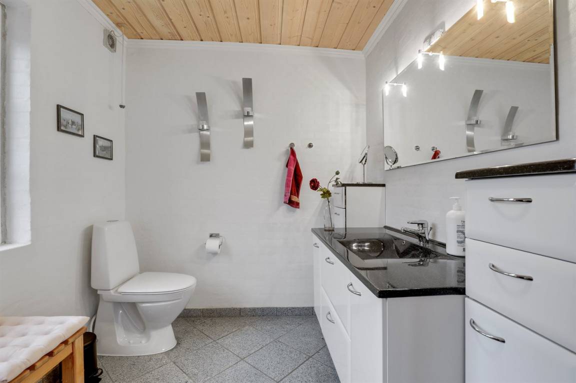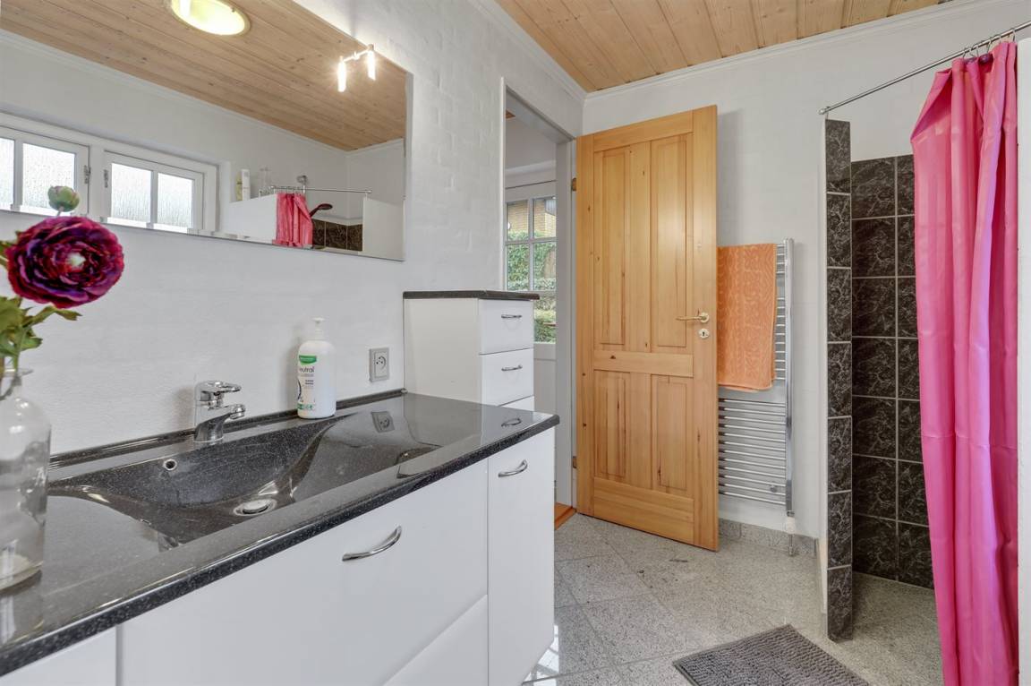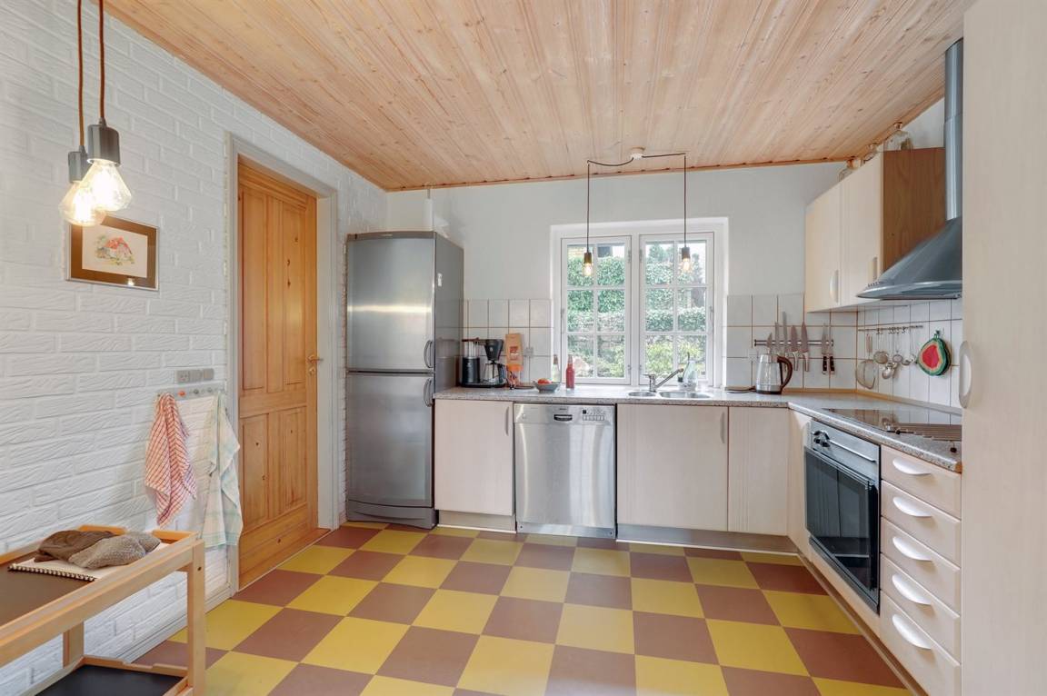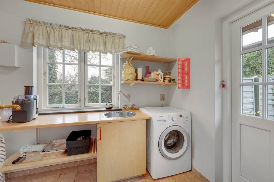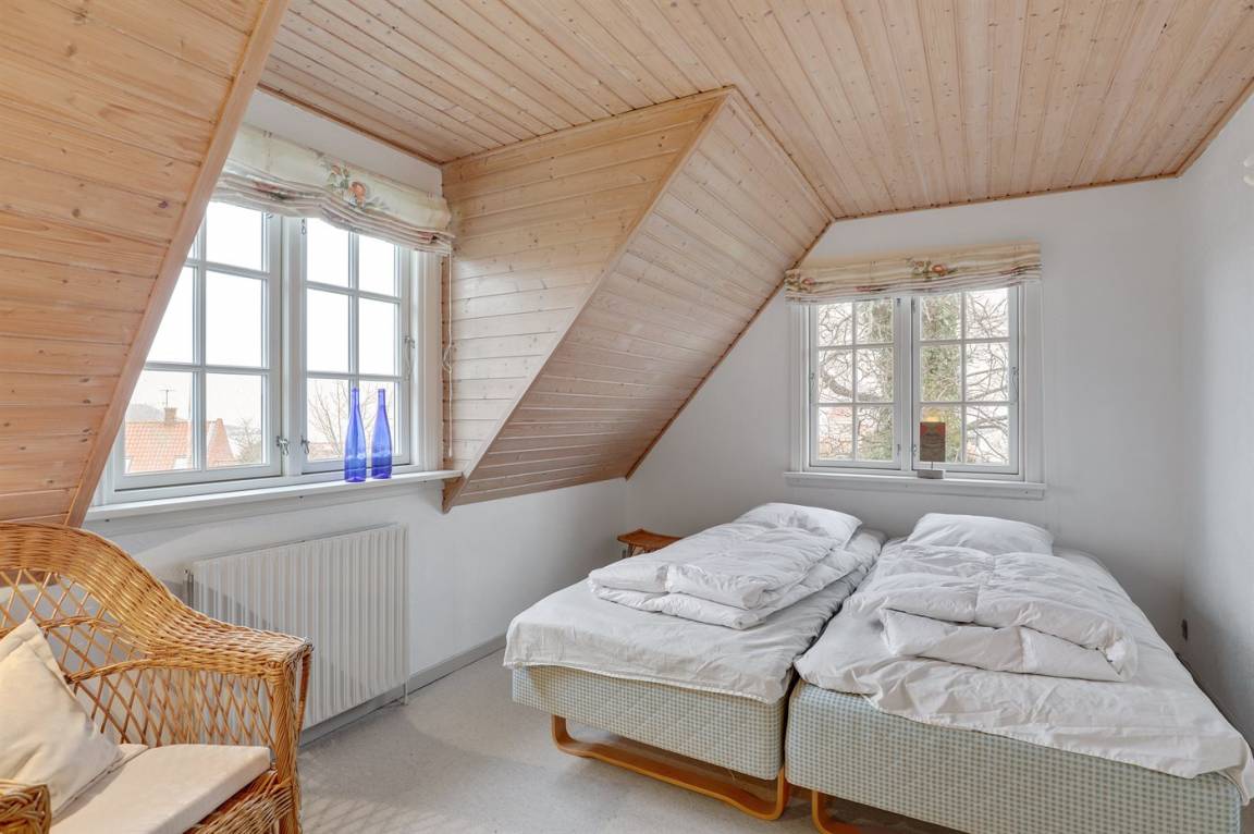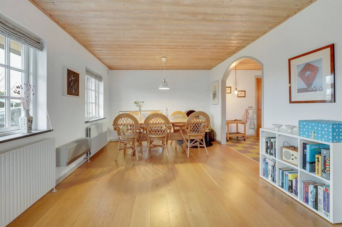 Ein besonders gut gelegenes Ferienhaus mitten in Sandvig - in der Nähe des Sandstrandes, der großen Naturgebiete mit Hammerknuden, Opalsøen und Langebjerg.