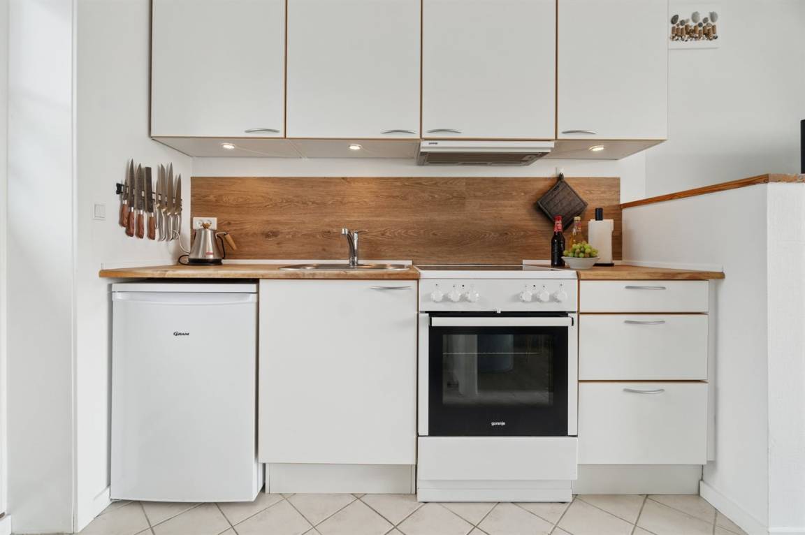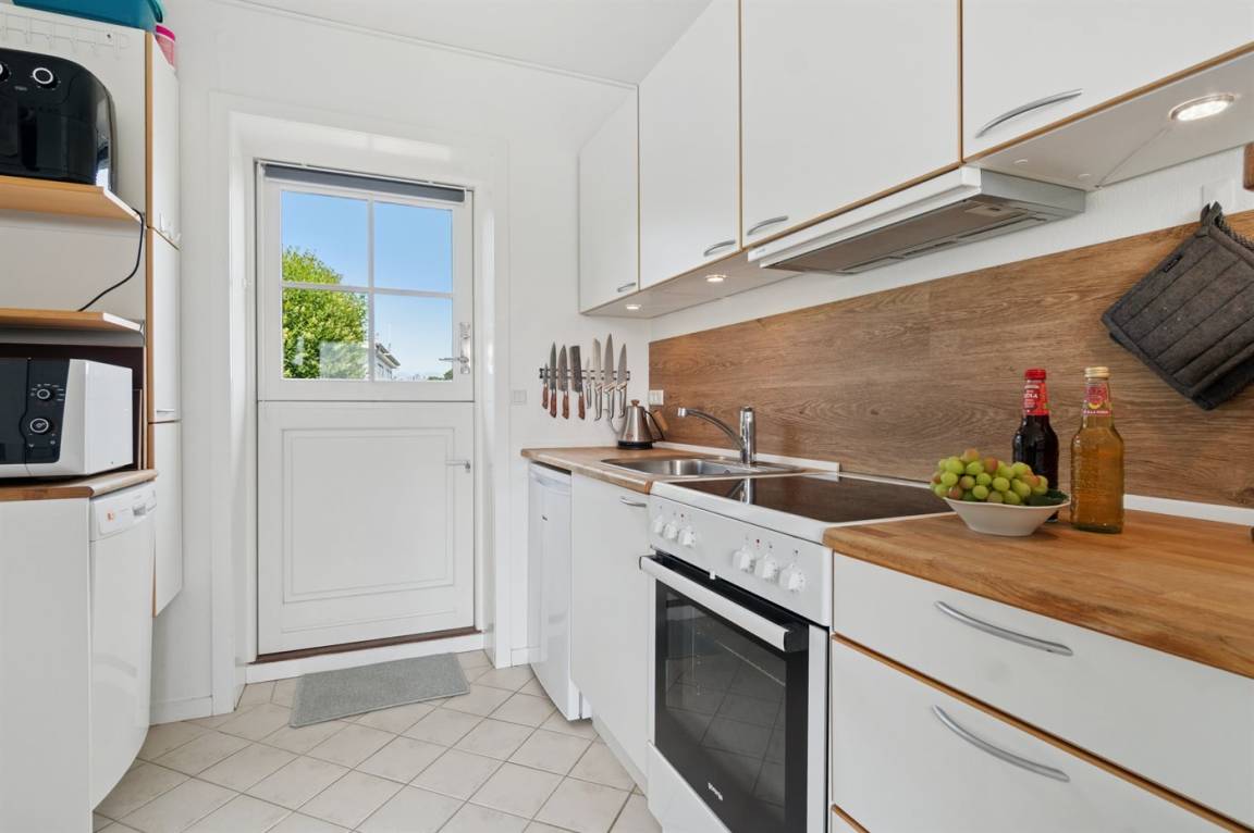 KücheDie Küche ist mit Kühlschrank ausgestattet. Außerdem gibt es 4 Keramik-Kochfelder, Umluftofen, Mikrowelle sowie Geschirrspüler. Fußbodenheizung in der Küche.