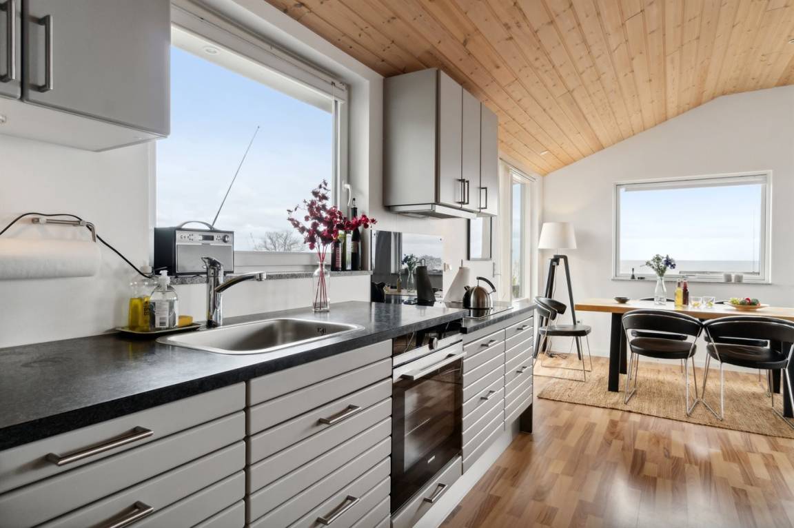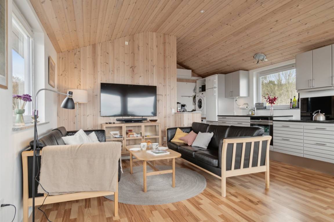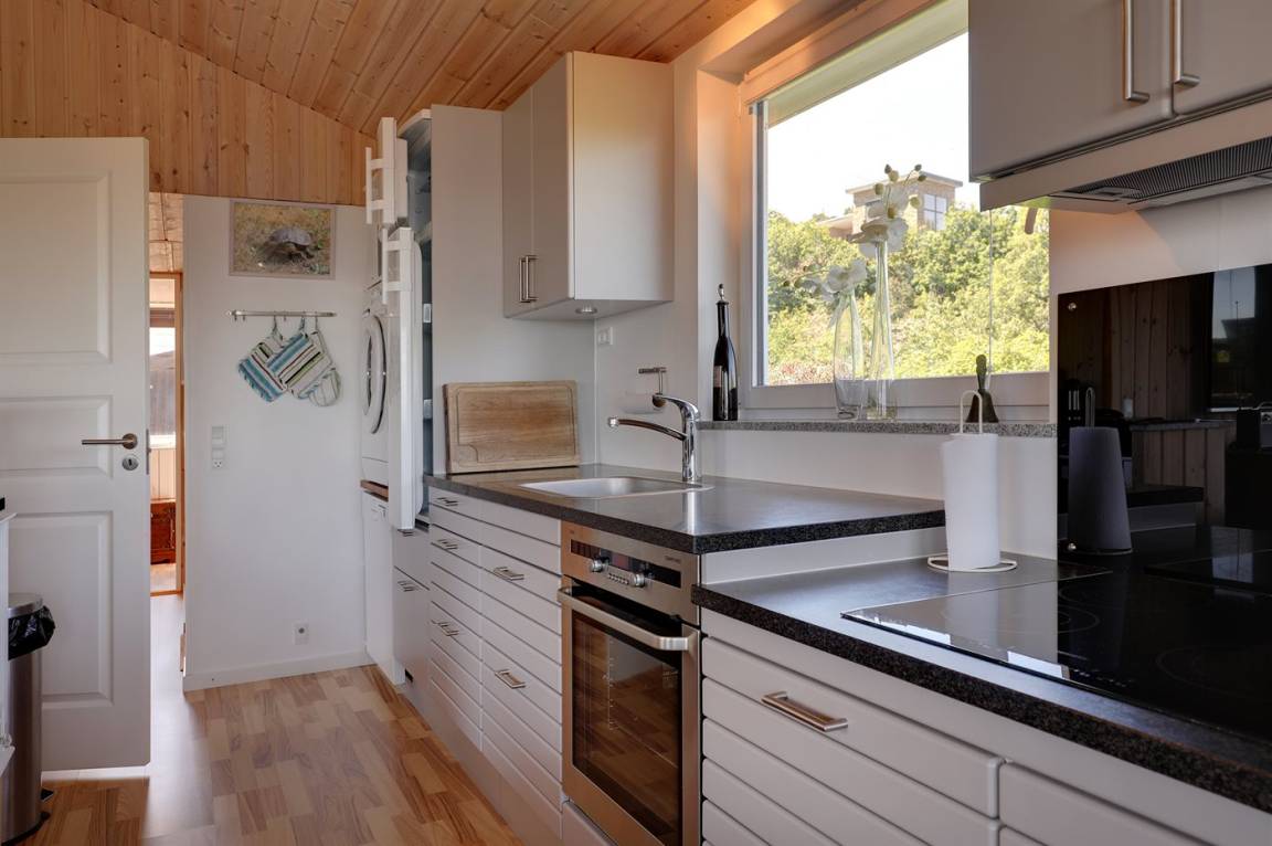 Dieses schöne und hell eingerichtete Ferienhaus mit Meeresblick liegt dicht an dem schönen Sandstrand von Sandkås. Das Haus ist von einer schönen, in versetzter Ebene liegenden und zum Teil abgeschirmten Terrassenfläche umgeben - von hier aus kann man den Meeresblick in vollen Zügen genießen.