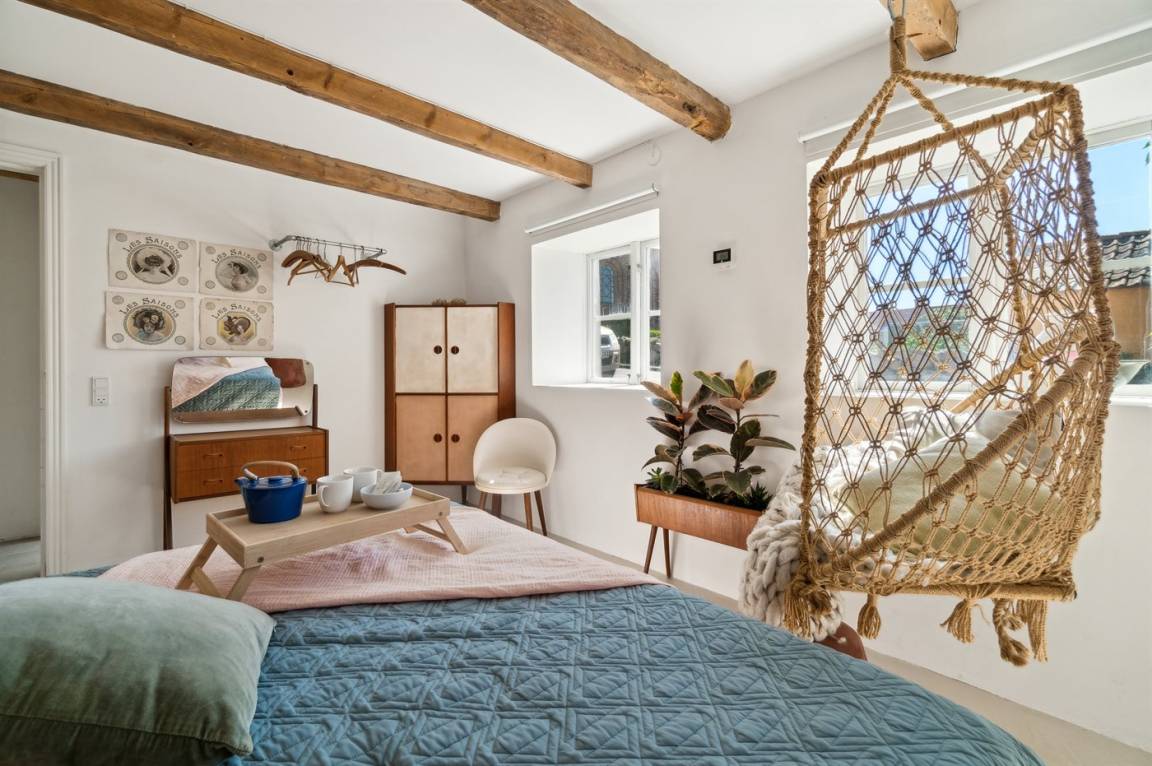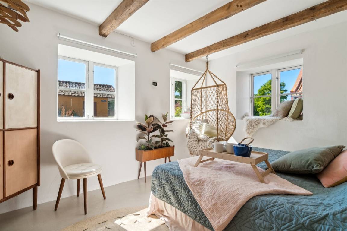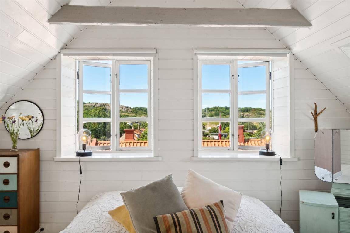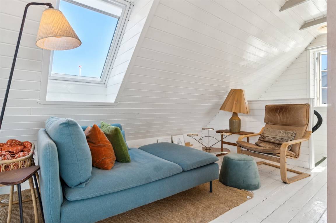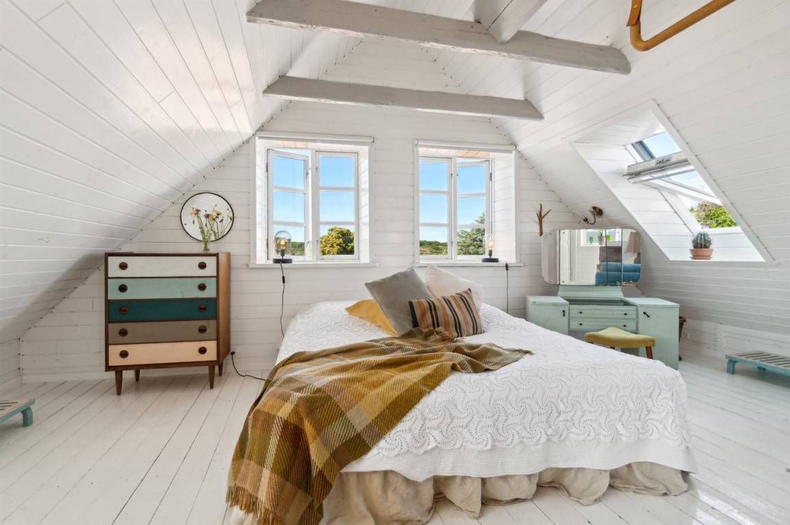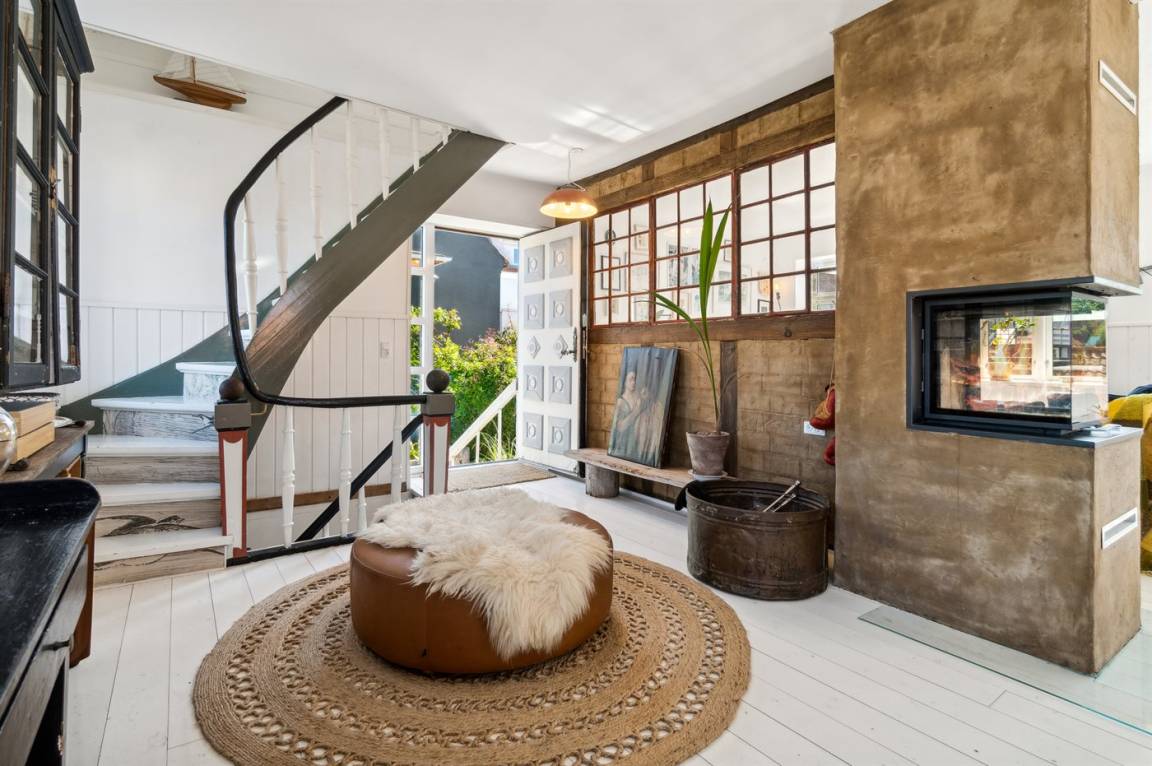 Du wohnst in einem sehr persönlich und geschmackvoll eingerichteten Haus mit Kunst und kuriosen Funden. Überall gibt es interessante handgefertigte Details, wie z.B. die alte geschwungene Treppe mit den Bornholmer Kanonenkugeln oder die luxuriösen Badezimmer mit Marmorino vom Boden bis zur Decke. An Materialien wurde nicht gespart. Das Obergeschoss ist ein großer heller Aufenthaltsraum mit großem Fernseher und Doppelbett. Von hier aus genießt du einen beeindruckenden Blick in alle vier Himmelsrichtungen mit Hammerknuden, dem Meer und den schönen Fachwerkhäusern von Sandvig. Hier befinden sich auch ein neues, schönes Badezimmer und ein kleines offenes Obergeschoss. Das Erdgeschoss besteht aus einer Küche mit Essbereich, mit hohen Decken und Paneelen. Hier gibt es eine schöne neue Küche aus Eschenholz, einen Essbereich und einen Loungebereich mit Fernseher und einer gemütlichen Couch. In der Mitte des Raumes befindet sich ein luxuriöser Einsatzkamin mit Glas auf drei Seiten. Von der Küche aus gelangst du auf eine gemütliche Holzterrasse und in den Steingarten mit vielen Obstbäumen. Vom Erdgeschoss und vom Garten aus gelangst du in das Untergeschoss. Hier gibt es einen Eingangsbereich mit einem Waschtrockner unter der Treppe. Ein großes und schönes, neues Badezimmer mit Badewanne und Dusche. Zwei schöne Schlafzimmer, eines mit Doppelbett und eines mit zwei Einzelbetten. Das Haus wurde komplett renoviert, isoliert und verfügt über Fußbodenheizung.