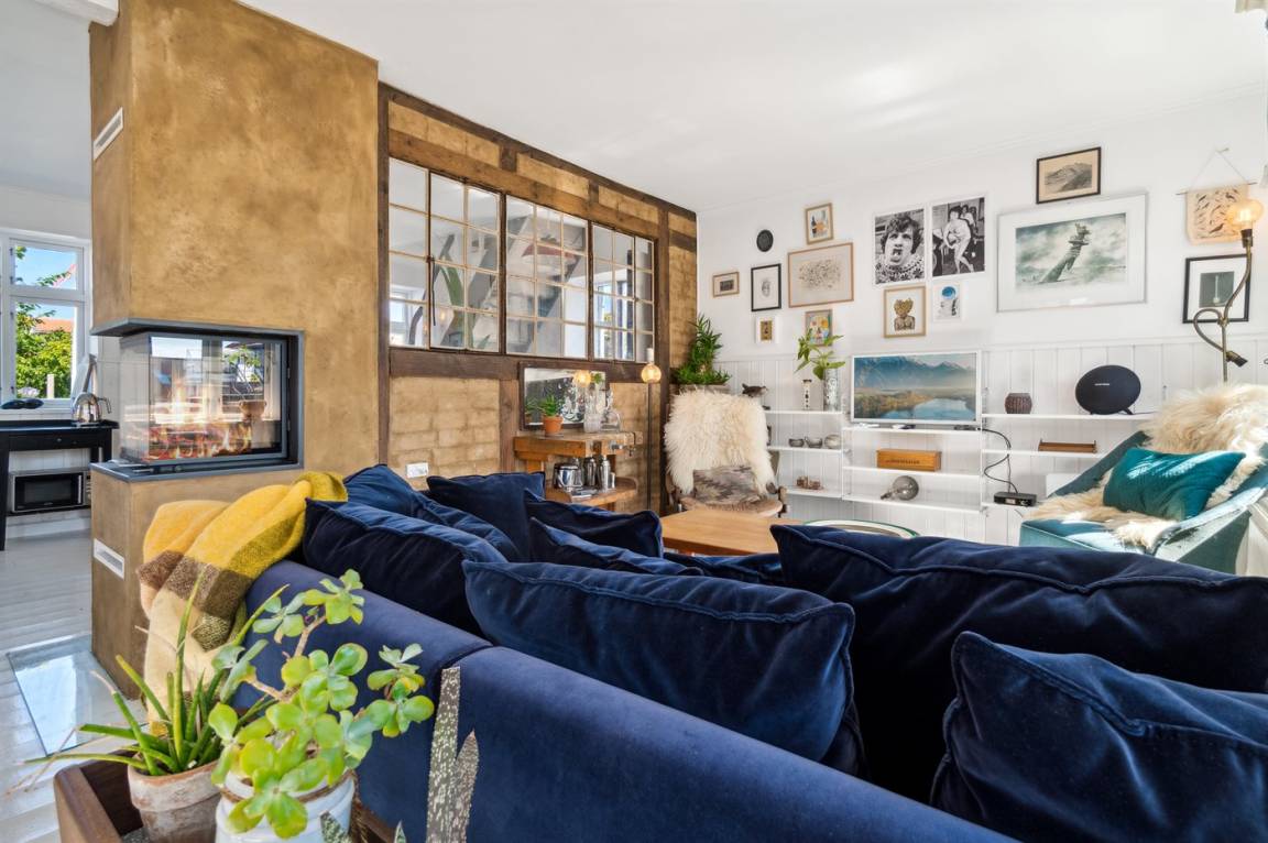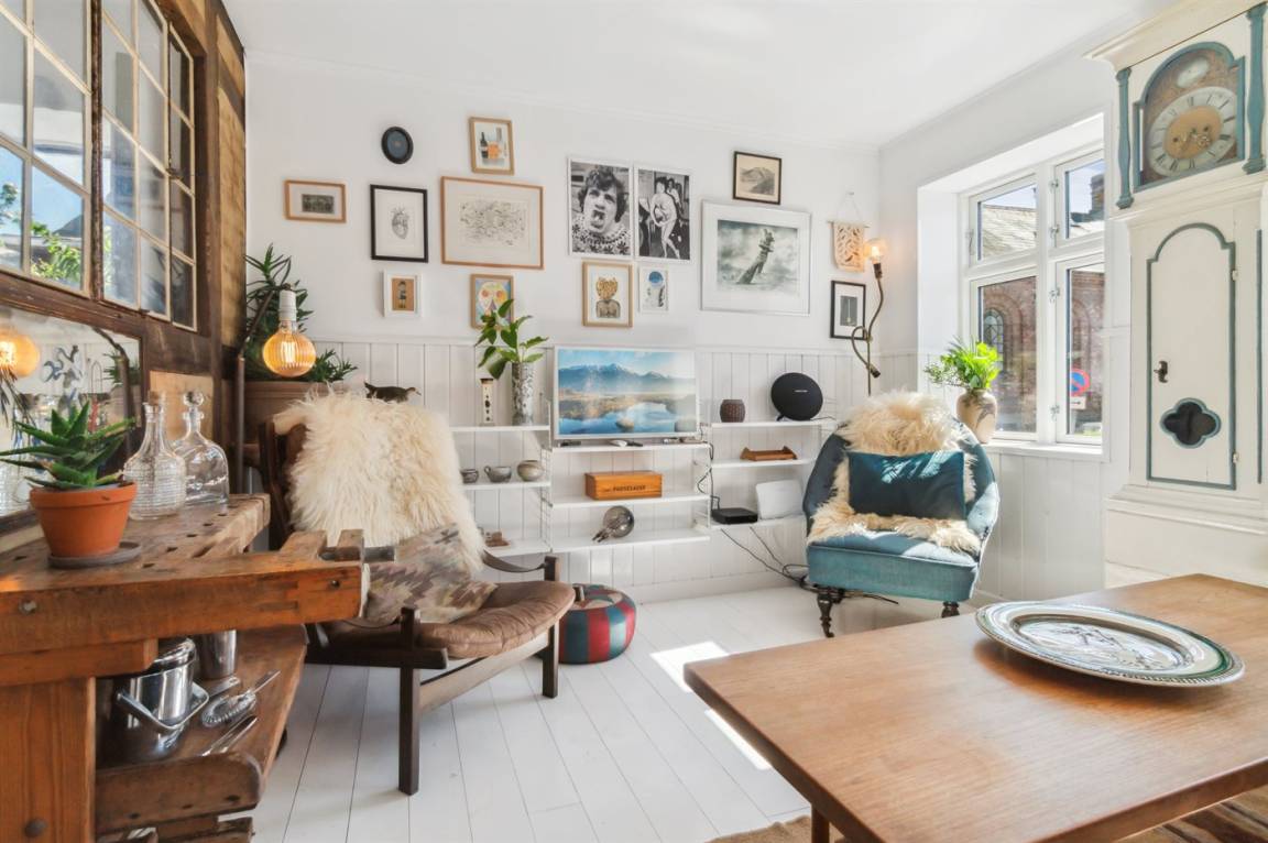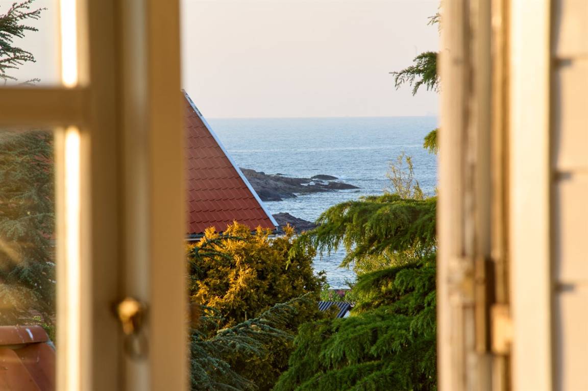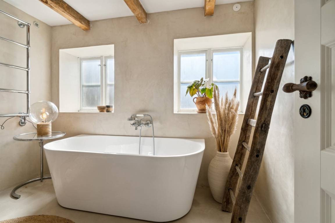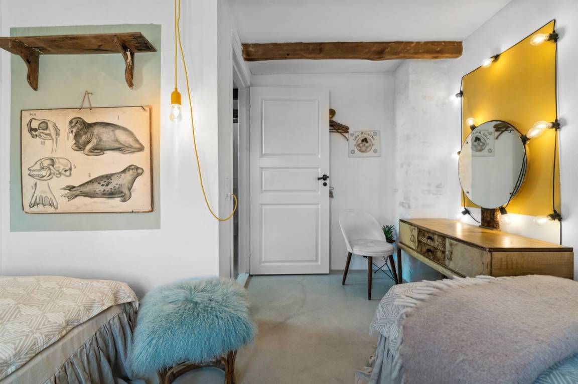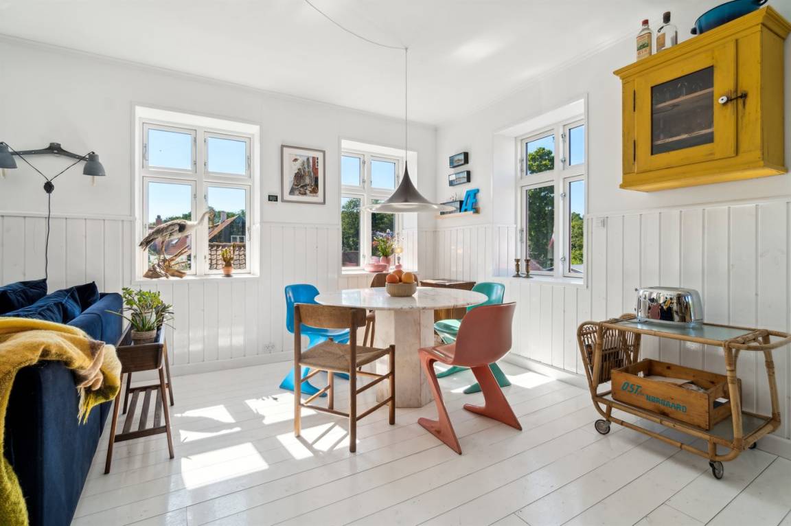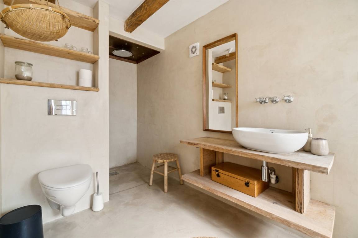 Du wohnst in einem sehr persönlich und geschmackvoll eingerichteten Haus mit Kunst und kuriosen Funden. Überall gibt es interessante handgefertigte Details, wie z.B. die alte geschwungene Treppe mit den Bornholmer Kanonenkugeln oder die luxuriösen Badezimmer mit Marmorino vom Boden bis zur Decke. An Materialien wurde nicht gespart. Das Obergeschoss ist ein großer heller Aufenthaltsraum mit großem Fernseher und Doppelbett. Von hier aus genießt du einen beeindruckenden Blick in alle vier Himmelsrichtungen mit Hammerknuden, dem Meer und den schönen Fachwerkhäusern von Sandvig. Hier befinden sich auch ein neues, schönes Badezimmer und ein kleines offenes Obergeschoss. Das Erdgeschoss besteht aus einer Küche mit Essbereich, mit hohen Decken und Paneelen. Hier gibt es eine schöne neue Küche aus Eschenholz, einen Essbereich und einen Loungebereich mit Fernseher und einer gemütlichen Couch. In der Mitte des Raumes befindet sich ein luxuriöser Einsatzkamin mit Glas auf drei Seiten. Von der Küche aus gelangst du auf eine gemütliche Holzterrasse und in den Steingarten mit vielen Obstbäumen. Vom Erdgeschoss und vom Garten aus gelangst du in das Untergeschoss. Hier gibt es einen Eingangsbereich mit einem Waschtrockner unter der Treppe. Ein großes und schönes, neues Badezimmer mit Badewanne und Dusche. Zwei schöne Schlafzimmer, eines mit Doppelbett und eines mit zwei Einzelbetten. Das Haus wurde komplett renoviert, isoliert und verfügt über Fußbodenheizung.