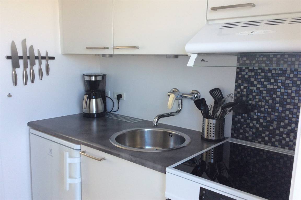 KücheDie Küche ist mit Kühlschrank ausgestattet. Außerdem gibt es 4 Induktions-Kochzonen, Umluftofen.