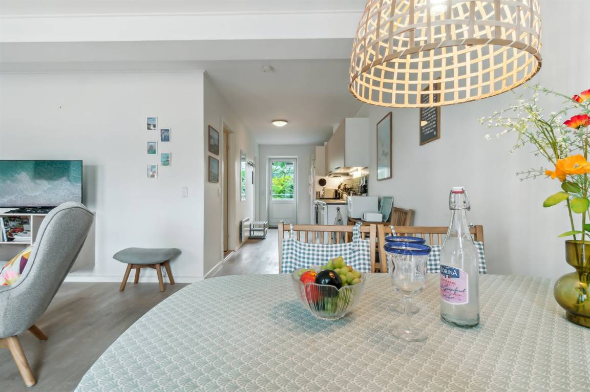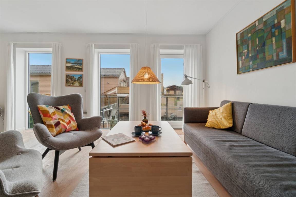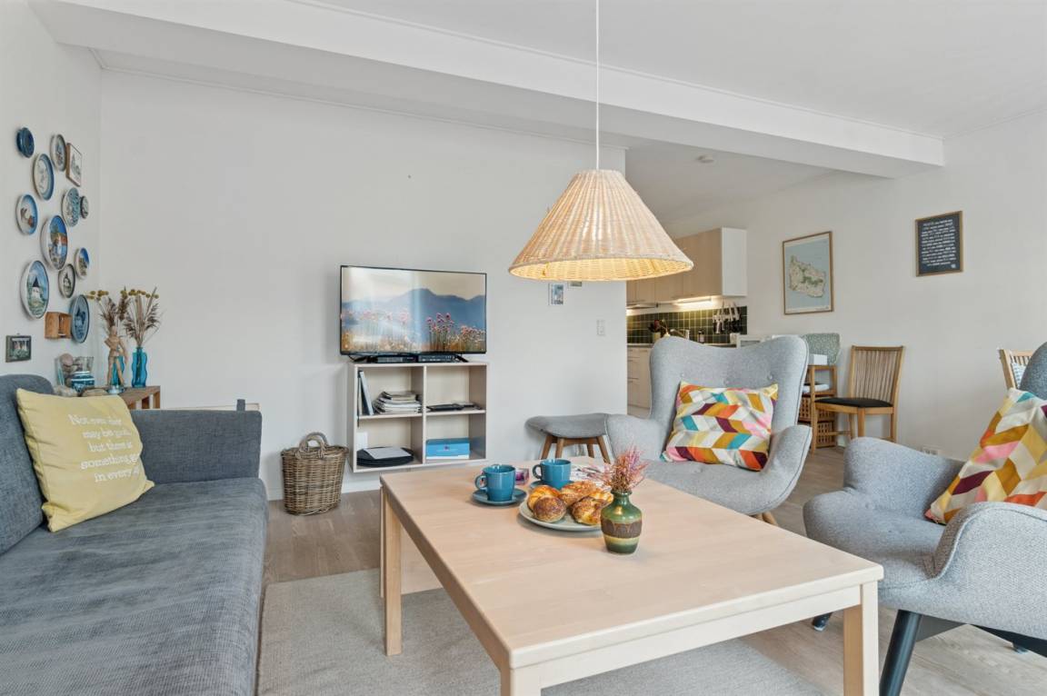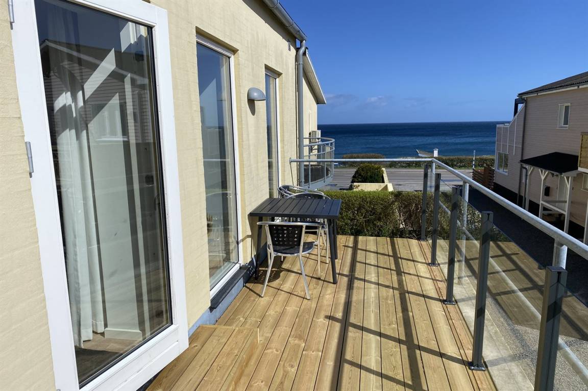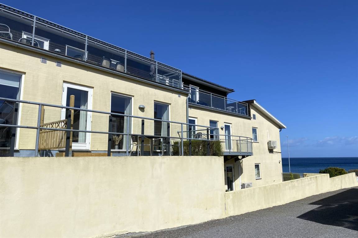 Diese einladende Ferienwohnung liegt im Obergeschoss der Ferienanlage „Sjølyst" – mit Meerblick und nur 50 Meter von der wunderschönen Felsküste entfernt.