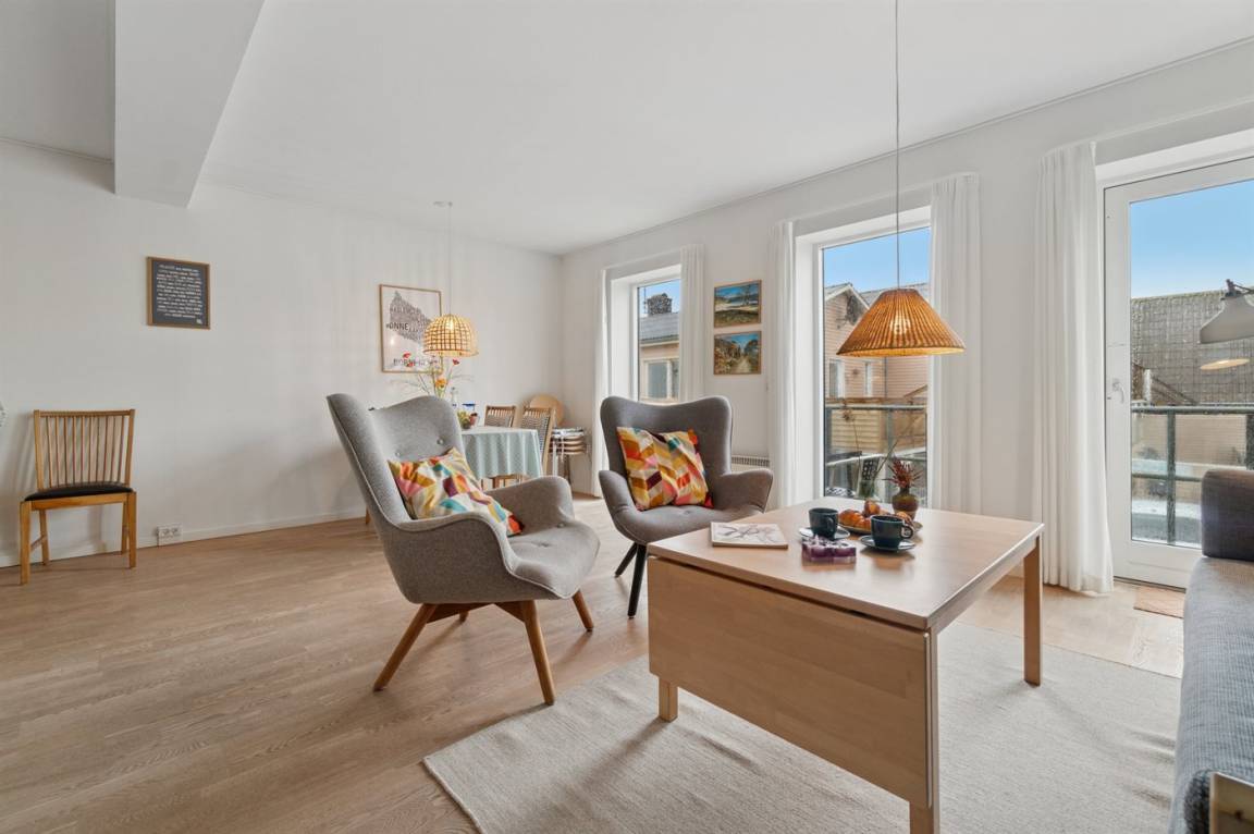 Zusätzlich steht dir eine große, gemeinschaftlich nutzbare Sonnenterrasse mit Blick über die Ostsee zur Verfügung – mit Liegestühlen, Sonnenliegen und Sitzgruppen. Die Gemeinschaftsflächen und Terrassen im „Sjølyst" nutzt du gemeinsam mit den anderen Feriengästen vor Ort.