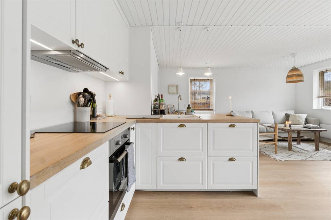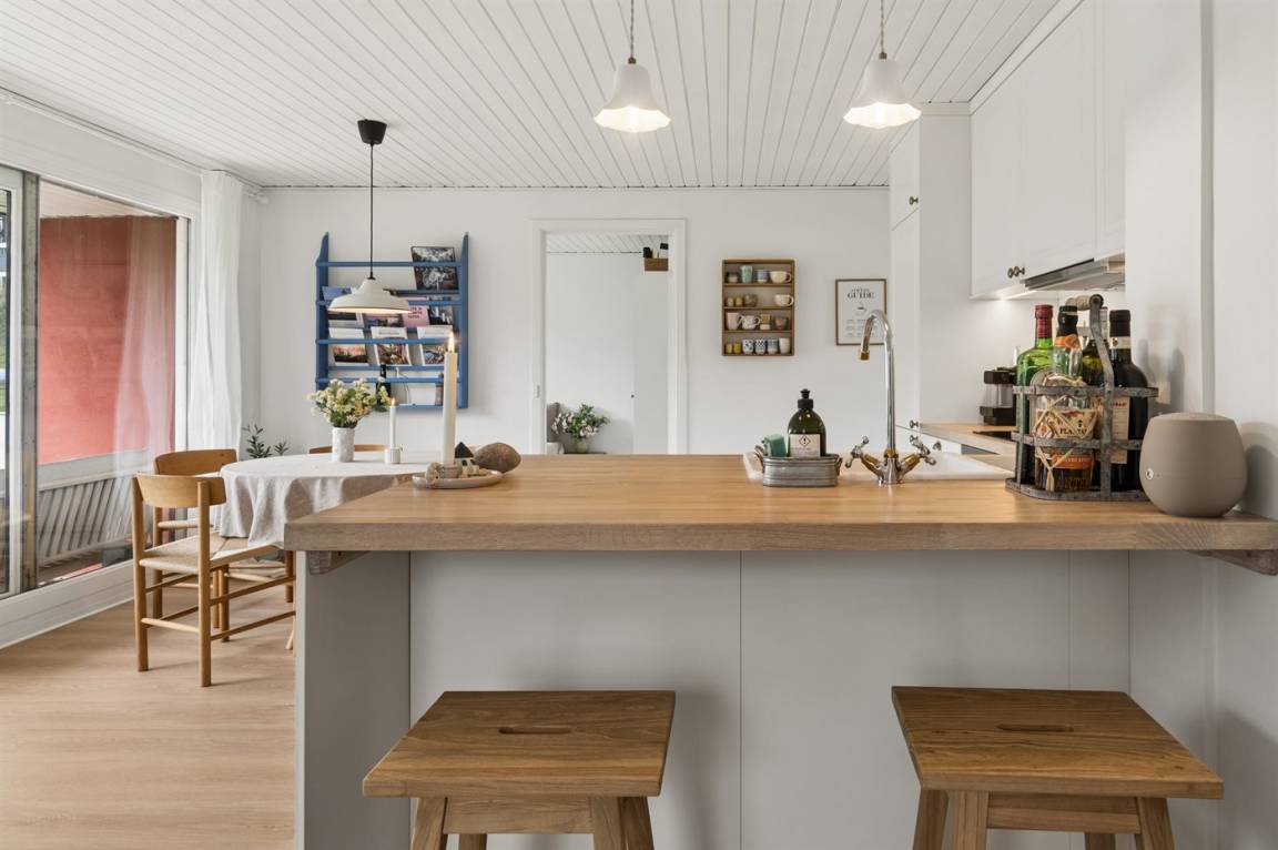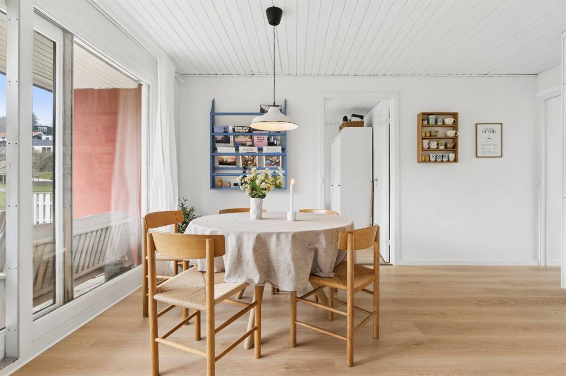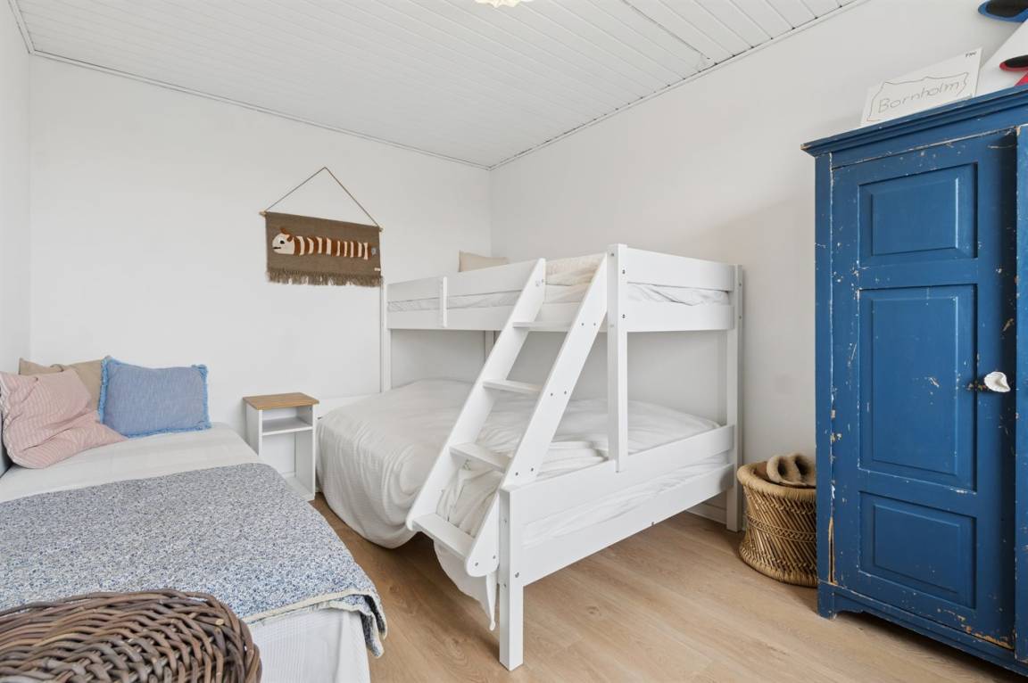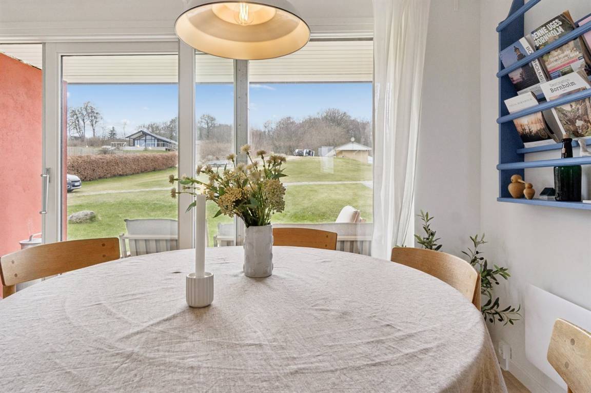 Die hügelige Landschaft von Sandkås sorgt dafür, dass die Wohnung hoch gelegen ist und einen wunderbaren Blick auf die Ostsee bietet, gleichzeitig aber leicht zugänglich bleibt. Die Umgebung ist ruhig, man befindet sich dennoch in der Nähe der Stadt Allinge, wo das Volkstreffen stattfindet. Ein kurzer Spaziergang entlang des Küstenwegs oder eine kleine Radtour führt direkt ins bunte Treiben von Allinge, besonders in der Woche 24, wenn die Stadt voller Leben ist.