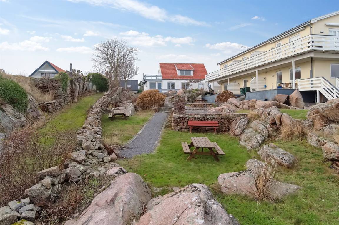 Das schöne Grundstück, das sich bis hinunter zu den Klippen erstreckt, ist mit den anderen Wohnungen gemeinsam, hat jedoch Zugang zu einem privaten Garten, der nur mit der Wohnung im Obergeschoss gemeinsam ist. Vom Garten aus hast du, über die Klippen, direkten Zugang zum Wasser – das Haus liegt schließlich in der ersten Reihe zum Meer.