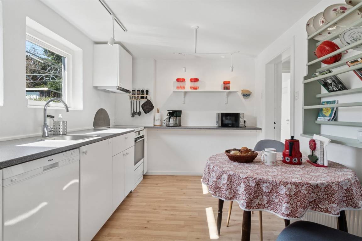 Das Haus liegt auf einem Gartengrundstück, und in einer geschützten Ecke des Grundstücks findest du die Terrasse, die gut vor Wind und Wetter abgeschirmt ist. Sandkås ist eine wunderbare Gegend – im Süden findest du Tejn mit einem Supermarkt, einer Bäckerei und einem lebendigen Hafen, während du im Norden auf Allinge-Sandvig triffst, die beiden charmanten Zwillingsstädte, die mittlerweile vollständig zusammengewachsen sind. Eine ganze Reihe an Sehenswürdigkeiten liegt also direkt vor deiner Tür!