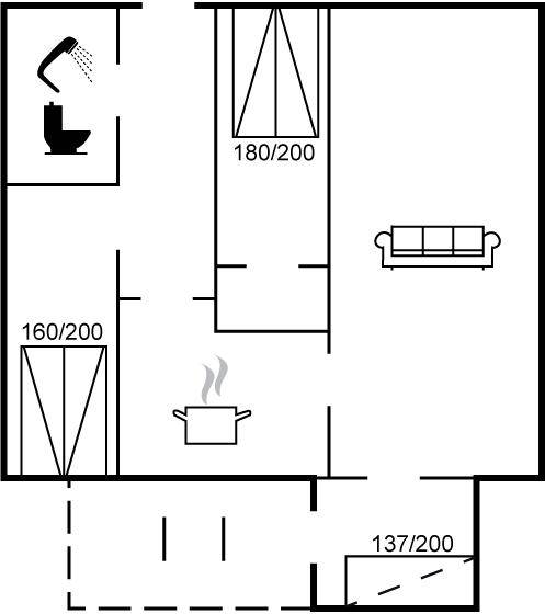 SchlafverhältnisseDie Schlafplätze verteilen sich auf 2 Schlafräume. 4 Schlafplätze in Doppelbetten. Ein Schlafplatz auf einer Schlafcouch. 1 von diesen Schlafplätzen befindet sich im Wohnzimmer.