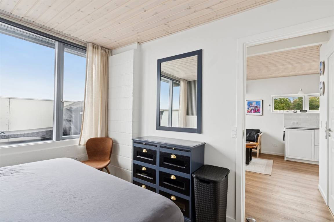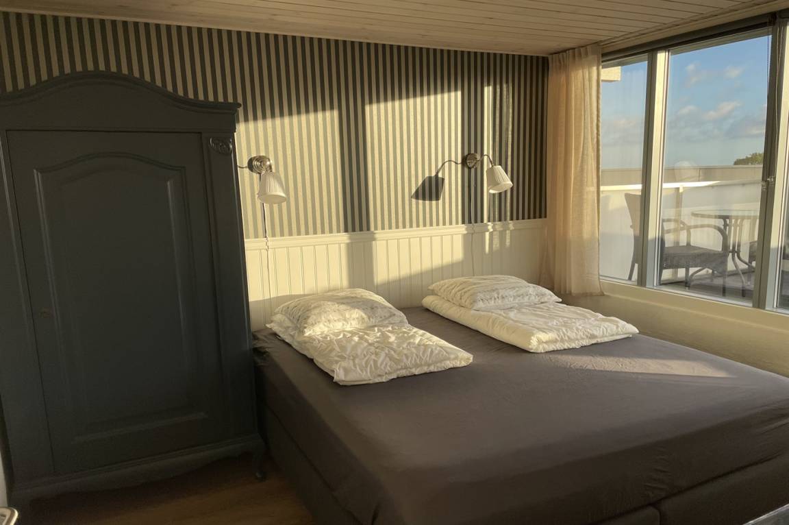 Die große Panoramafensterfront sorgt für einen schönen Lichteinfall, und zusammen mit der hellen Einrichtung und der guten Möblierung entsteht eine angenehme Atmosphäre. Es gibt bequeme Betten und ein funktionales, helles Badezimmer.