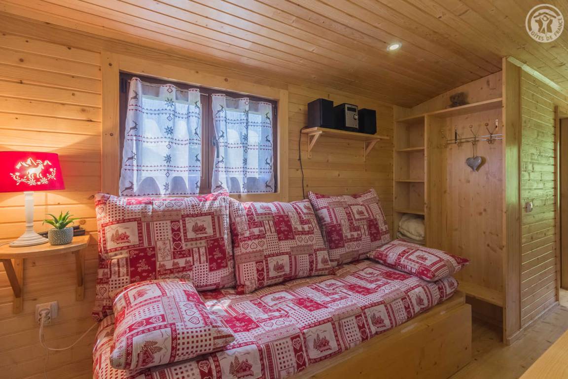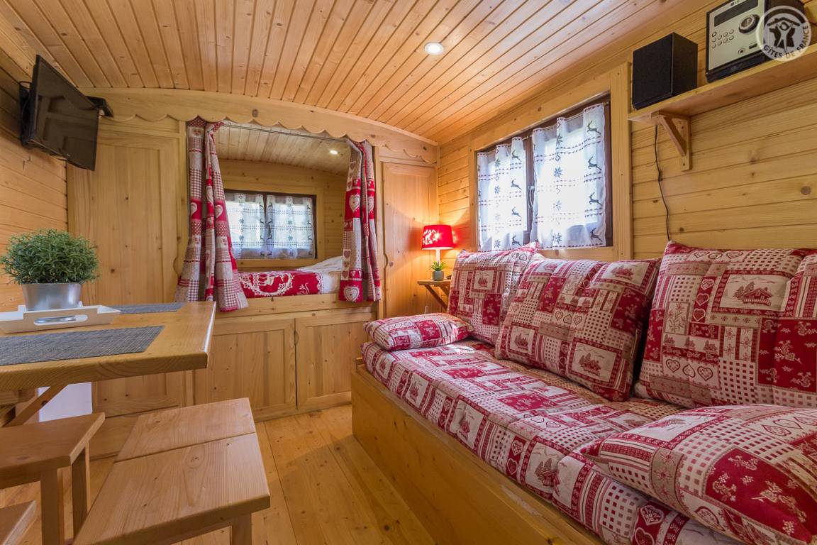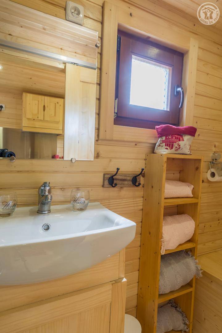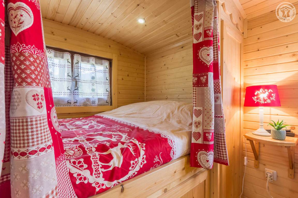„Une roulotte décorée façon chalet très chaleureux. Confortable et tout est très bien pensé. De plus dans un endroit magnifique et reposant Merci“