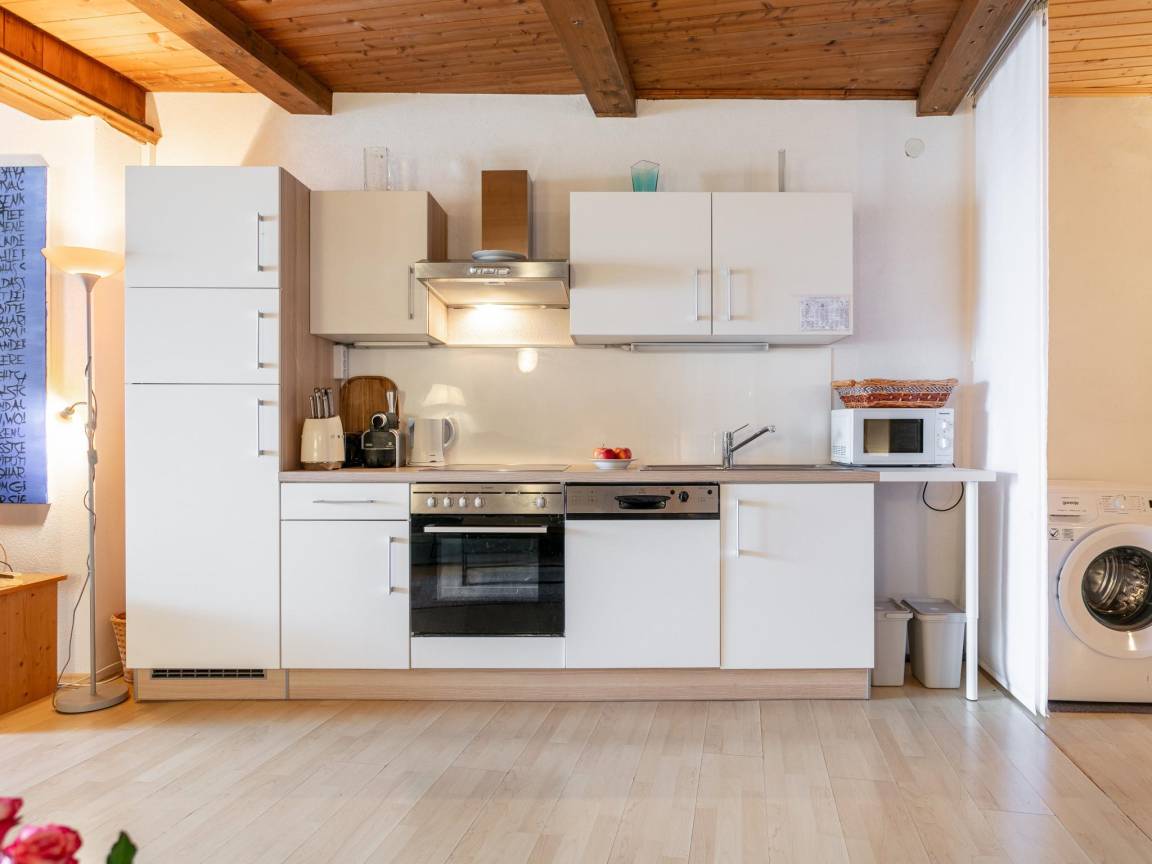 Layout : Parterre(privater Eingang): offene Küche mit Wasserkocher, Toaster, Kochherd(4 Kochplatten, Ceranfeld, elektrisch), Dunstabzugshaube, Kaffeemaschine(nespresso cups), Backofen, Mikrowelle, Geschirrspüler, Kühl-/Gefrierkombination , Wohn/Esszimmer mit Doppelschlafcouch(140 x 200 cm), TV, Esstisch(4 Personen), Radio, Waschmaschine , Schlafzimmer mit Schlafcouch 1 Pers., 2x Doppelbett(160 x 200 cm) , Badezimmer mit Waschbecken, Dusche, Toilette