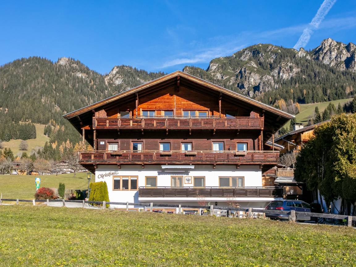 Hausbeschreibung : Erleben Sie Komfort im Landhaus Christina! Nur wenige Meter vom Zentrum entfernt bietet das Apartment im klassischen Alpbacher Stil mit eleganten Holzelementen eine warme Atmosphäre. Der sonnige Balkon begeistert mit Ausblick auf die Alpbachtaler Berge. Große Schlafzimmer mit eigenem Bad, eine voll ausgestattete Küche und ein gemütliches Wohnzimmer machen die Wohnung perfekt
