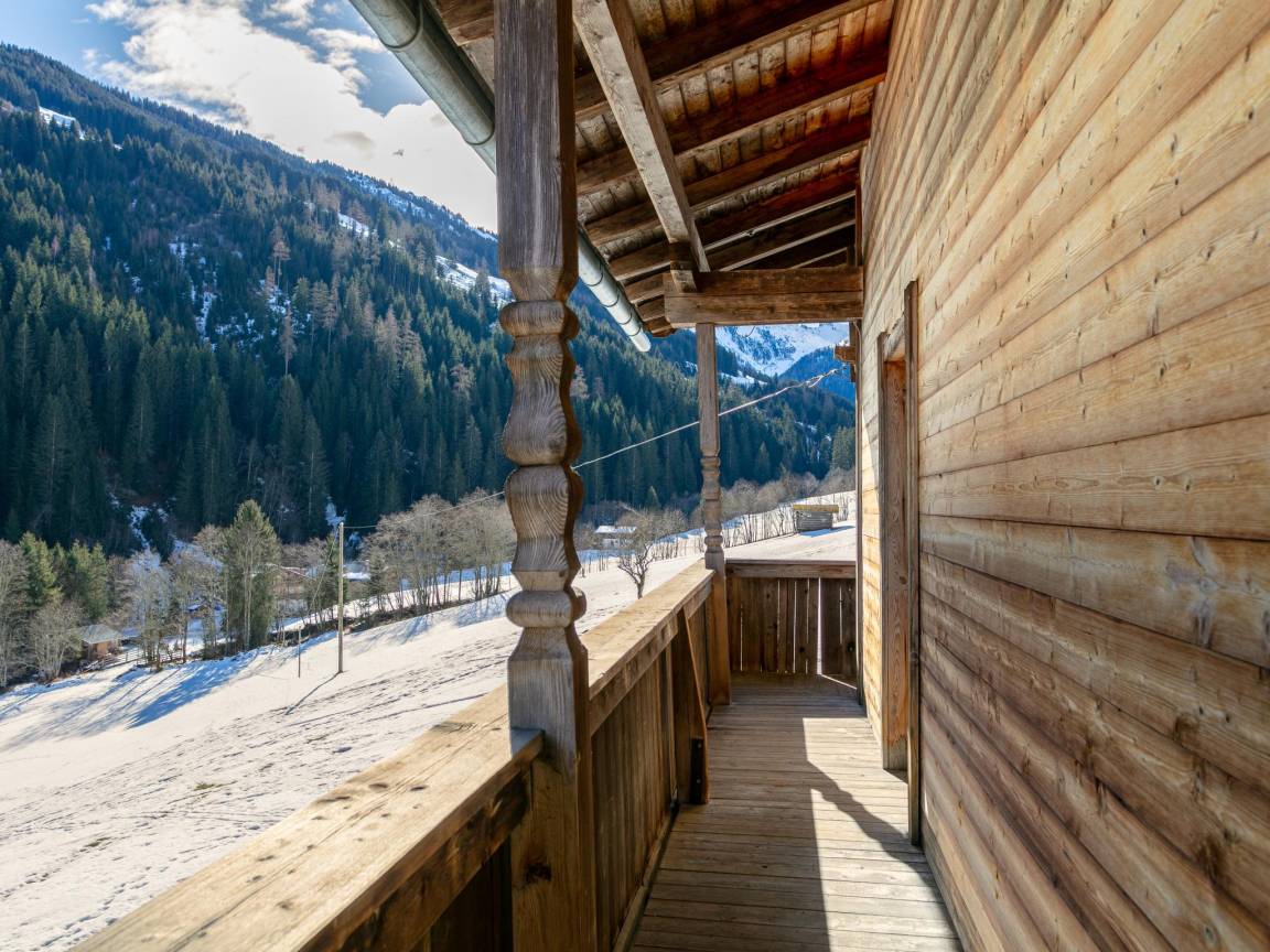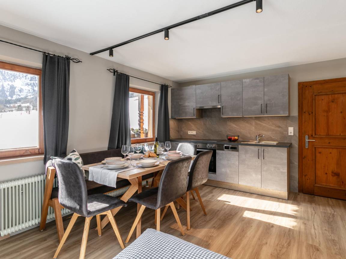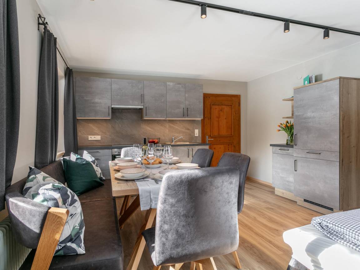 Hausbeschreibung : Erleben Sie Urlaub in traumhafter Lage mit herrlichem Blick auf die Bergwelt. Die Ferienwohnung für bis zu 7 Personen befindet sich im 1. Stock in einem liebevoll renovierten Bauernhaus. Sie verfügt über 2 Schlafzimmer, 2 moderne Badezimmer und eine stilvolle, voll ausgestattete Küche und einem Balkon. Das gemütliche Wohn-Esszimmer mit großem Esstisch, wie auch einer Doppelschlafcouch, lädt zudem zum Verweilen ein. Ein Ort zum Entspannen, Wohlfühlen und Genießen!