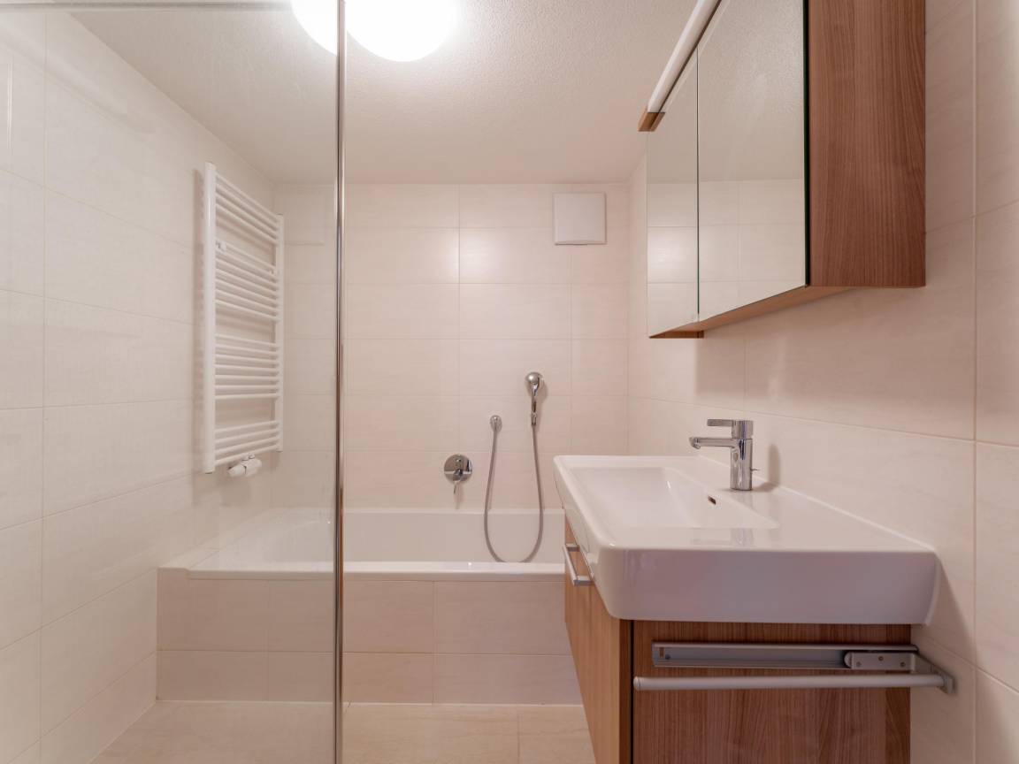 Layout : Parterre: Wohnzimmer mit TV, Sitzecke, Terrasse , Küche mit Toaster, Kochherd(4 Kochplatten, Ceranfeld), Dunstabzugshaube, Kaffeemaschine(Filter), Backofen(elektrisch), Geschirrspüler, Kühl-/Gefrierkombination, Waschmaschine, Balkon , Toilette mit Waschbecken , Skiabstellraum mit Skischuhheizung
