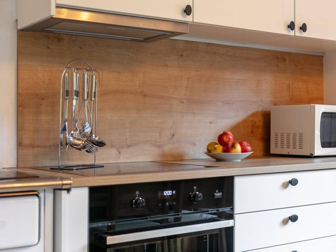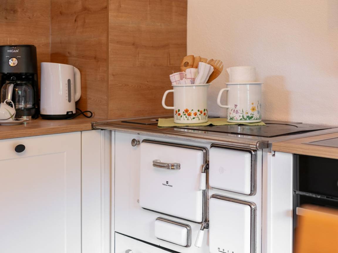In der 1. Etage: Wohnzimmer mit TV(Flatscreen), Esstisch(12 Personen), Ofen(Holz, Kachel), Sitzecke , Küche mit TV(Flatscreen), Esstisch, Sitzecke, Wasserkocher, Toaster, Kochherd(4 Kochplatten, Induktion), Dunstabzugshaube, Kaffeemaschine(Filter), Backofen, Mikrowelle, Geschirrspüler, Kühl-/Gefrierkombination , Schlafzimmer mit Einzelbett(90 x 200 cm), Doppelbett(180 x 200 cm), Waschbecken