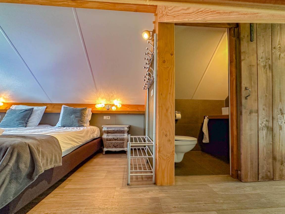 „Wir durften früher als vereinbart in die Hütte, was schon super war. Wir wurden sehr gastfreundlich von Miranda empfangen. Es gab eine Flasche Wein für uns in der Hütte und 2 Kuchen warten. Es war sehr gemütlich, und super sauber. Miranda war sehr schnell zu reagieren, wenn wir etwas gemailt. Es ist ein kleiner Park mit 5 schönen Häusern. Die Gegend ist wunderschön zum Radfahren, viele Wälder. Auch in der Nähe von Baarle Nassau. Wir haben uns amüsiert.“