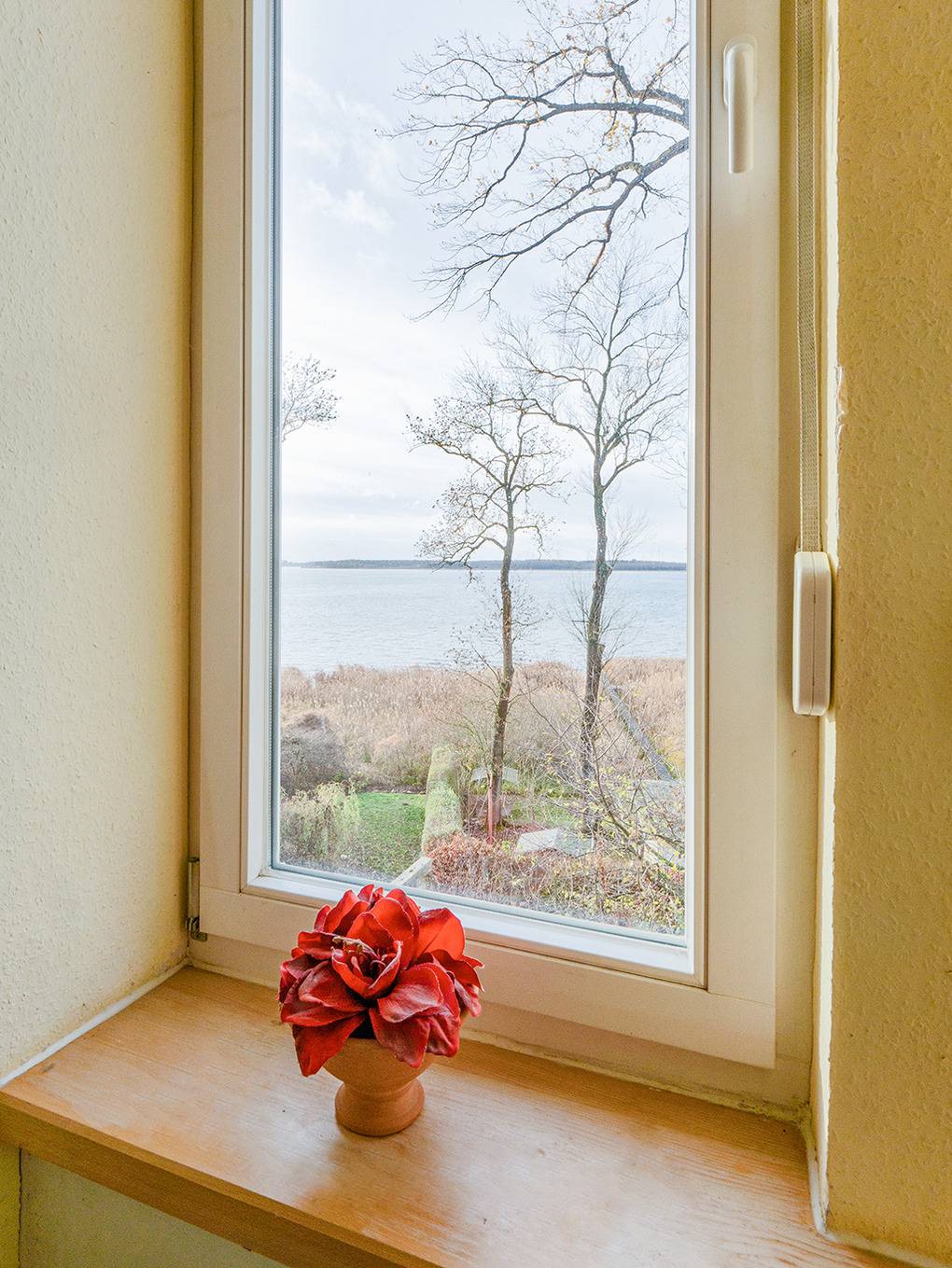 Haus: Schönes Ferienhaus mit Sauna und Kamin. Fantastischer Seeblick aus der ersten, am Hang gelegenen Häuserreihe. Gepflegte, sehr gemütliche Einrichtung. Zentralheizung. Große Terrasse mit herrlichem Wasserblick, Sitzmöbeln, Grill. Direkter Seezugang über Treppe von der Terrasse. 2 Kajaks zur freien Verfügung (Gemeinschaftsnutzung mit dem Nachbarhaus D 47.52, Einweisung gegen geringe Gebühr). Fahrradschuppen, 6 Fahrräder leihbar (Gebühr). 2 Pkw-Stellplätze am Haus.