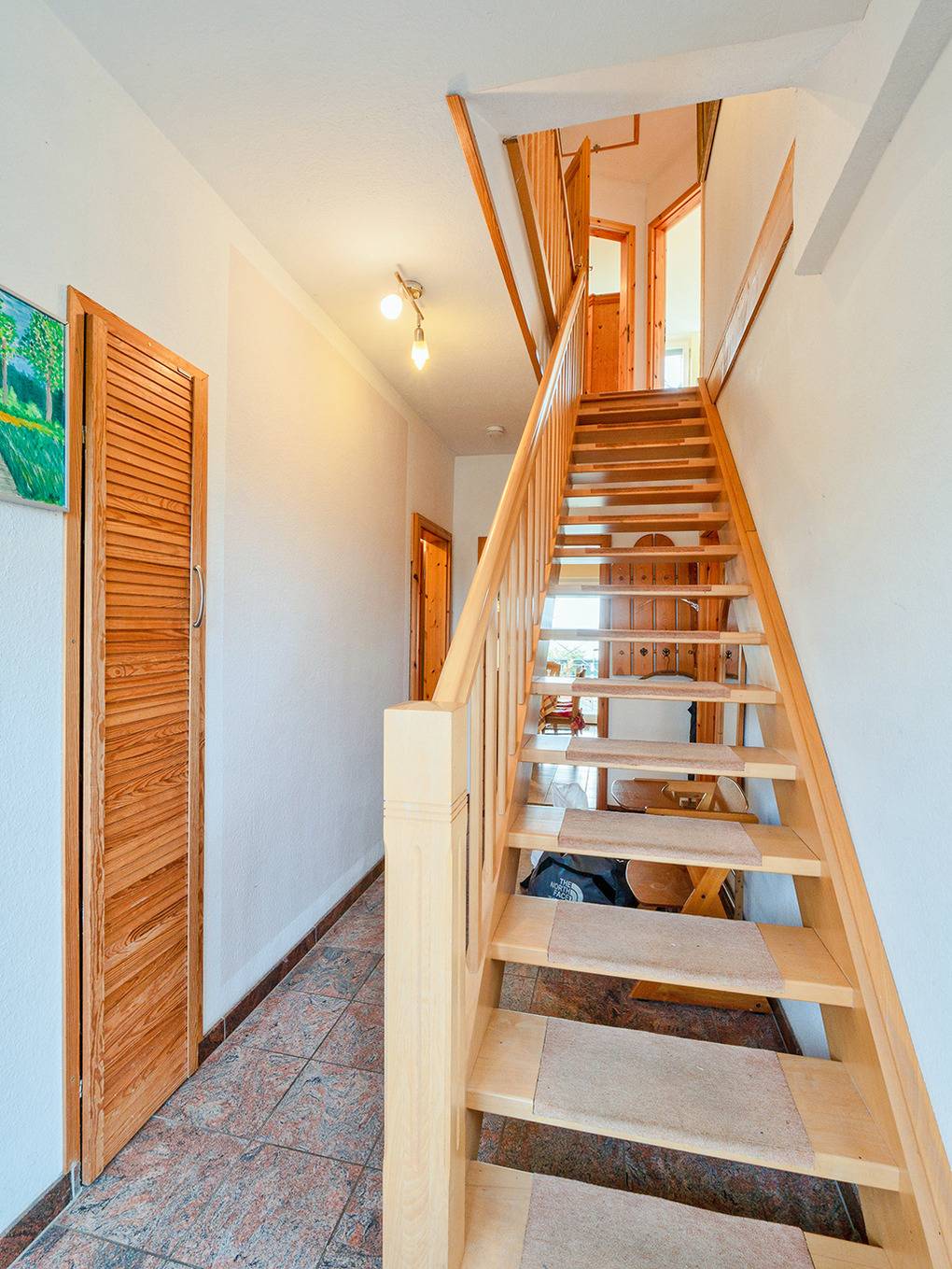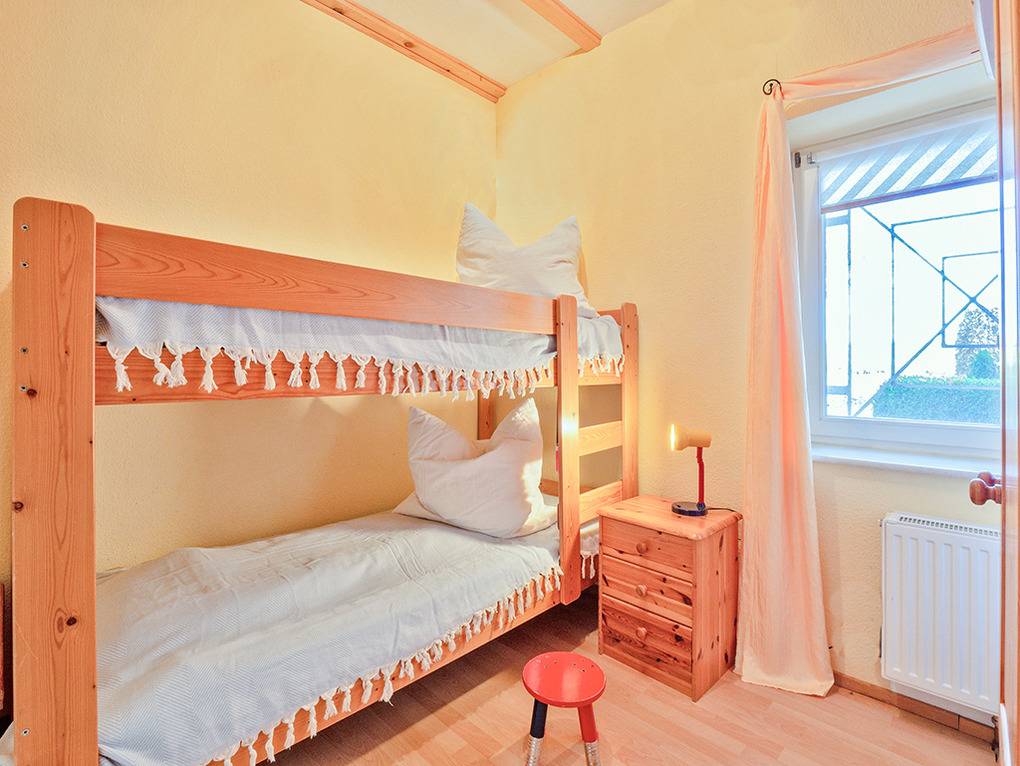 D 47.51 Ferienhaus 2-6 Pers.: 4-Zimmerhaus mit 85 qm Wohnfläche über zwei Etagen. Parterre: Großzügiger Wohn-/Essraum mit Couchgarnitur, Flachbild-Sat-TV, Kamin, Esstisch, Küchenzeile (Backofen, Spülmaschine). 2-Bettzimmer mit Etagenbett. Bad: Du, Wb, WC. 1. Etage (Dachschrägen): Doppelzimmer. Weiteres Doppelzimmer (Durchgangszimmer), dahinter: Wohn-/Schlafraum mit Schlafsofa (1-2 Pers.), Radio. Bad: Du, Wb, WC. Sauna. Hinweis: bitte beachten Sie, dass das Ferienhaus trotz mehr ausgewiesener Schlafplätze nur mit maximal 6 Personen belegt werden darf.