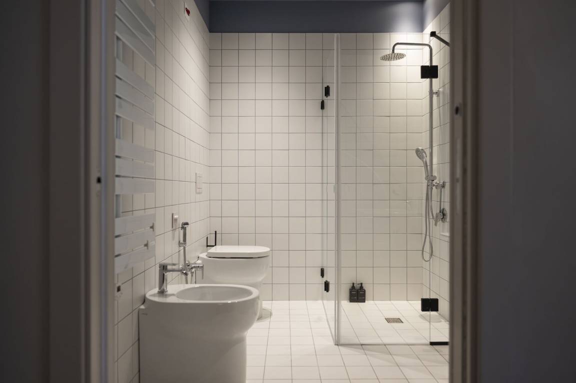 Badezimmer: Waschbecken, WC, Bidet, Dusche, Fön, WiFi Internet.