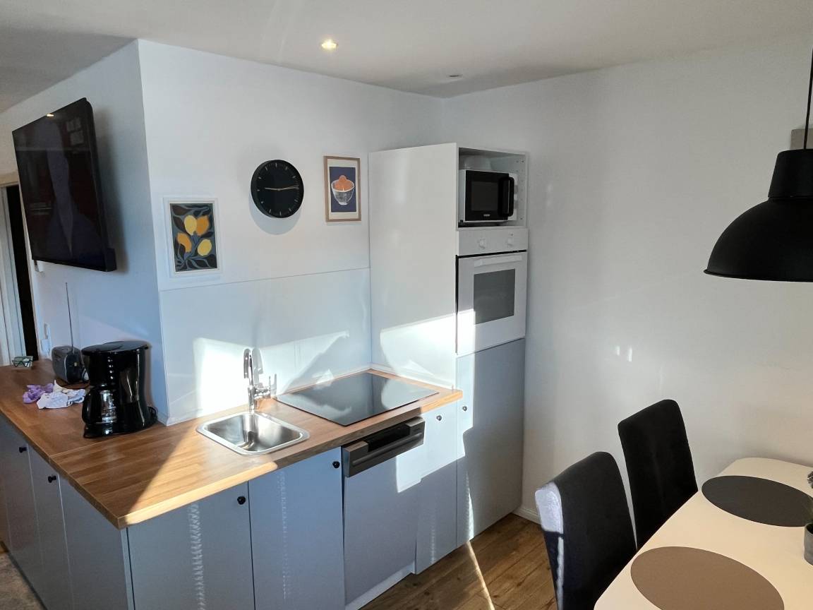 Das Apartment wurde im Mai 2021 komplett neu renoviert und verfügt über 1 Schlafzimmer (großes Bett 1,8m x2 m), eine Schlafcouch, 1 Badezimmer, einen Flachbild-TV, einen Essbereich, eine voll ausgestattete Küche und einer Terrasse mit Gartenblick.