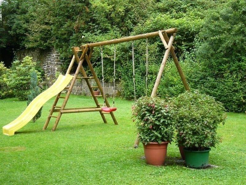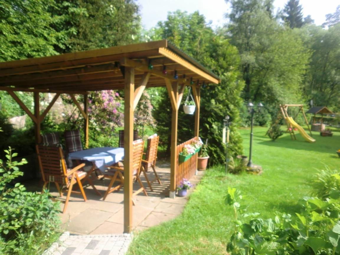 Am Haus befindet sich ein schöner Garten, mit Liegewiese, Gartenmöbeln und Grillplatz. Der Parkplatz liegt geschützt hinter unserem Haus.Für Kinder gibt es einen kleinen Spielplatz mit Schaukeln und Rutsche.