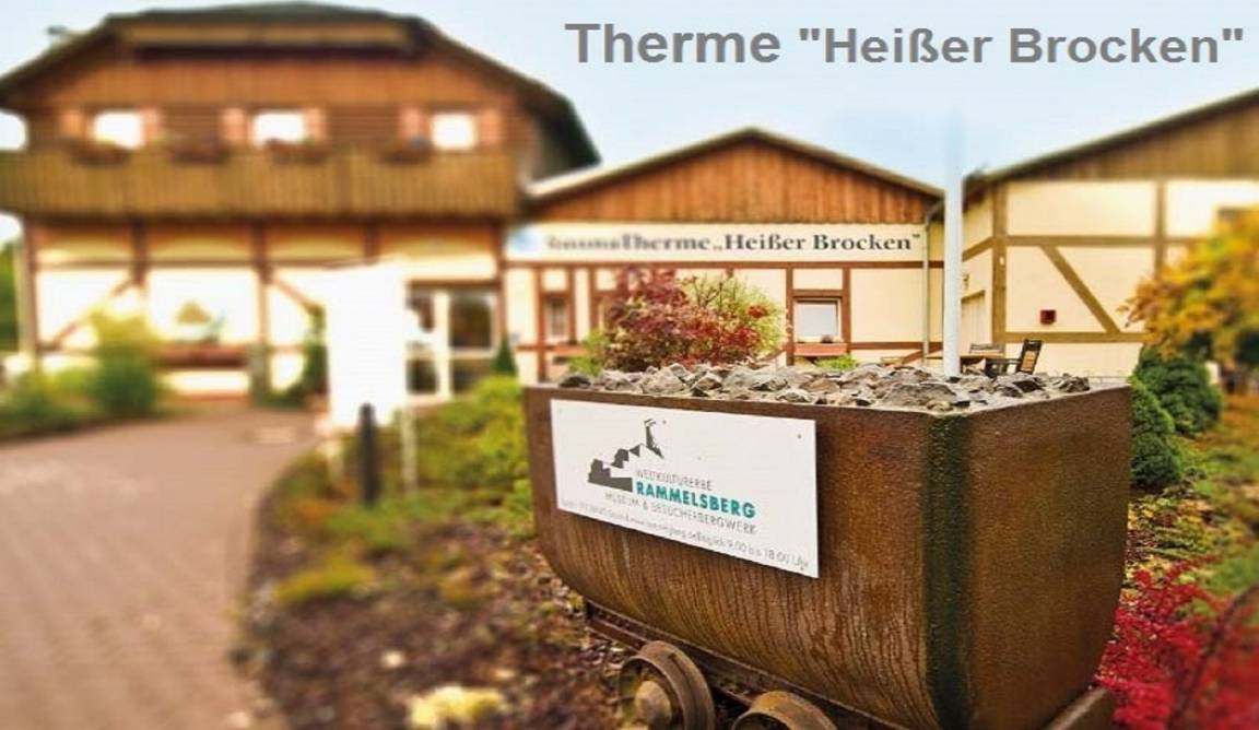 -Die Therme-/Solebad mit Saunalandschaft "HEISSER BROCKEN" ist gleich auf der gegenüberliegenden Strassenseite. Sie ist 364 Tage im Jahr geöffnet ,im Buchungspreis ist die Benutzung nicht enthalten! Die Karten können Sie Vorort zum Tages- oder zum Stundenpreis erwerben.