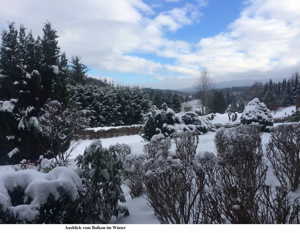 Bei uns können Sie sich in aller Ruhe erholen, die Luft und den Bergblick/Panoramablick des Kurortes genießen, da der Ausblick vom Balkon straßenabgewandt über eine starke Hanglage einen genußreifen Blick auf die umliegende Landschaft bietet.
