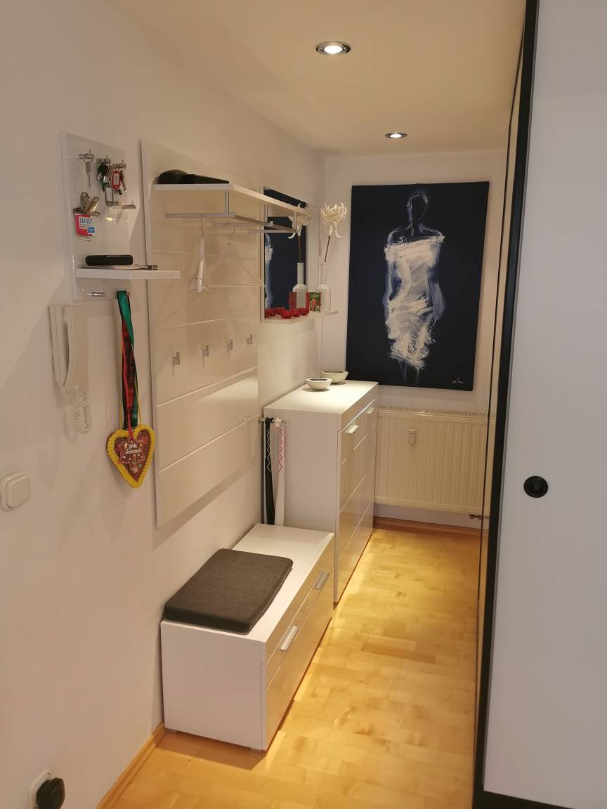 Garderobe, eine geräumige offene voll ausgestattete Küche mit allen Elektrogeräten zum Kochen, Brot backen etc. sind vorhanden / Esszimmer / ein Schlafzimmer mit einem Bett für 2 Personen.