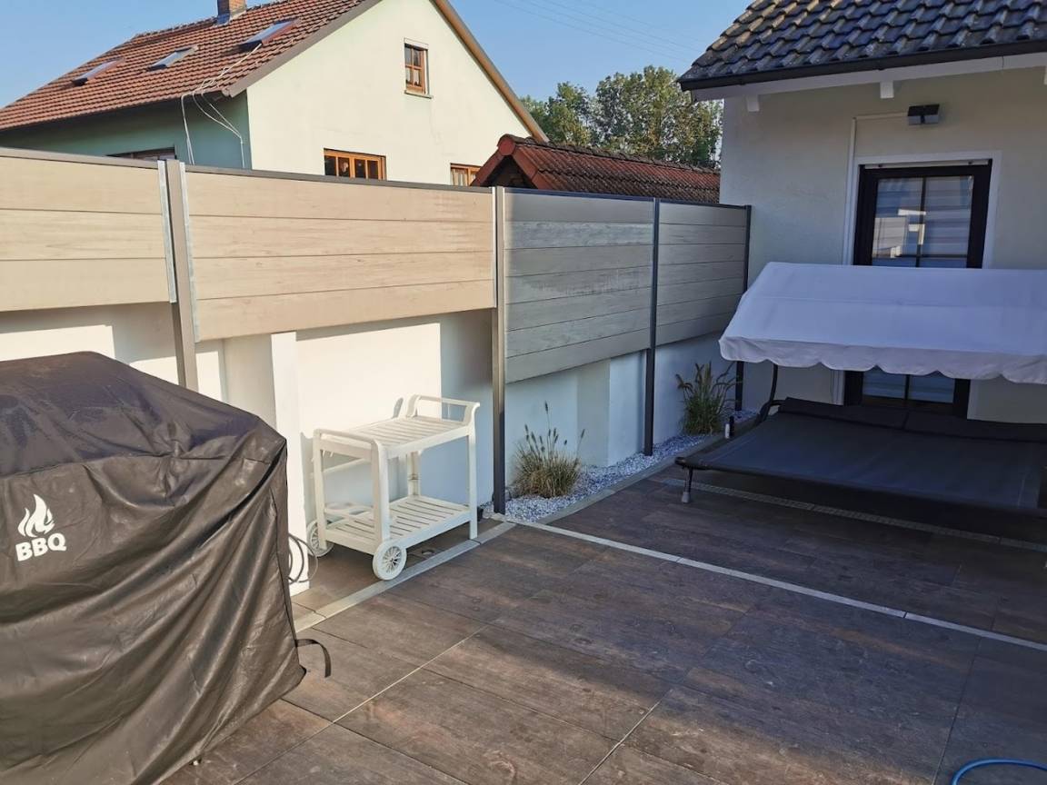 Insgesamt stehen Ihnen 123 m² Wohnfläche mit zur Verfügung, dazu 20 m² Sonnenterrasse sowie ein Balkon mit ca. 8 qm und der gesamte Garten und Poolbereich hinter dem Haus in den reservierten Zeiten zur Mitbenutzung.