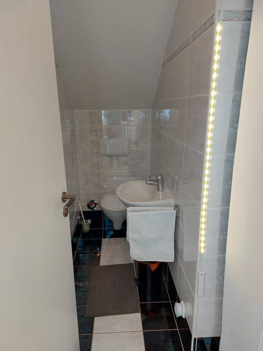 Das Badezimmer ist topmodern ausgestattet mit Dusche, Badewanne (Whirlpool) und WC. Eine separate Toilette steht ebenso zur Verfügung.