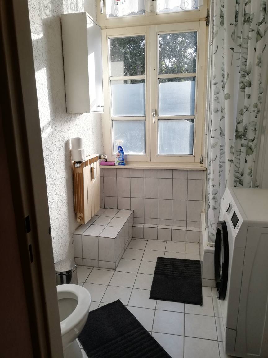 Die Wohnung befindet sich im 1.OG.. Gut ausgestattete Küche mit Mikrowelle, Toaster, Wasserkocher, und Kaffeemaschine (Filter). Raucherecke im EG und 1.OG Treppenhaus.