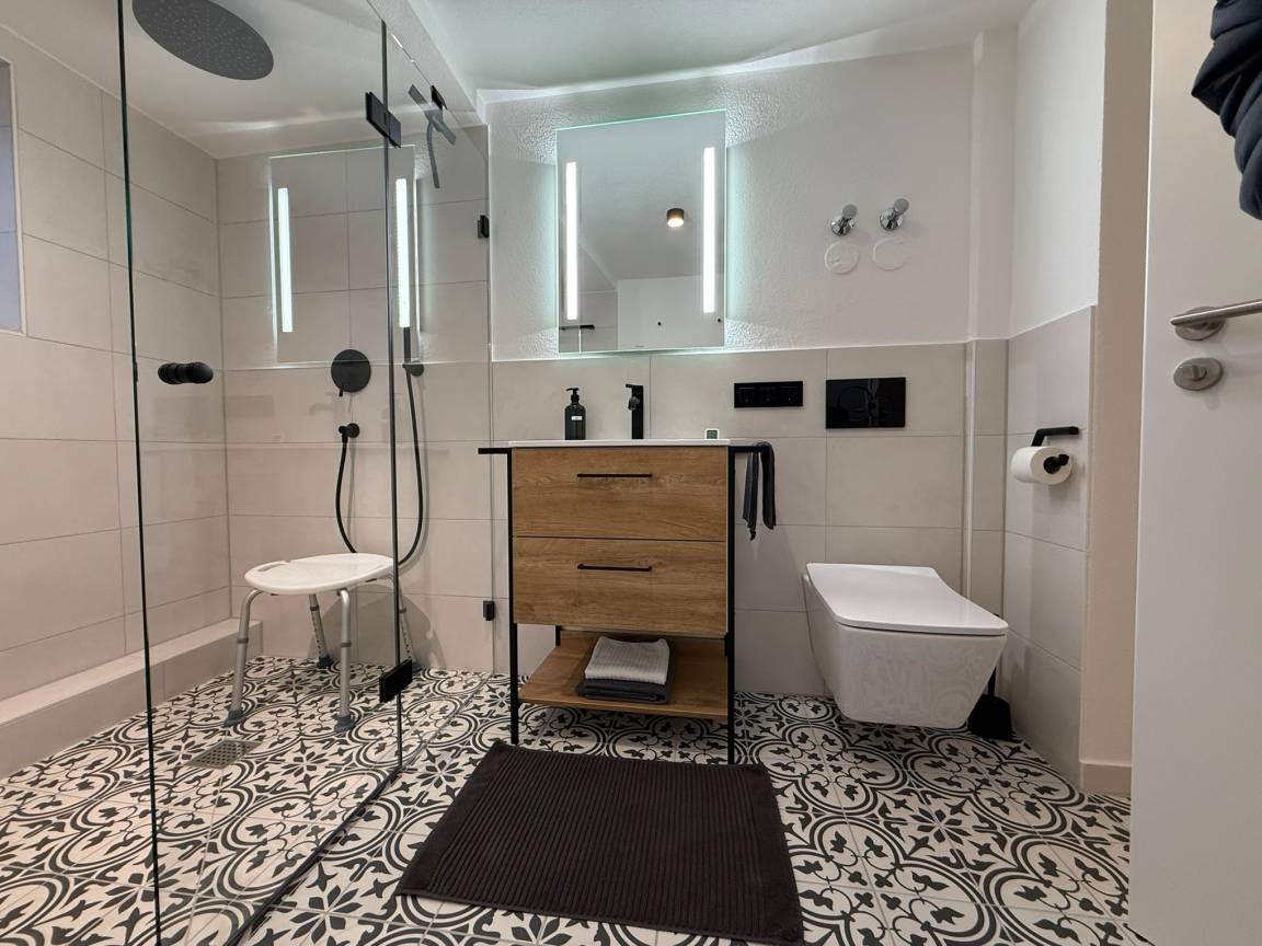 Unsere von 2023 bis Ende 2024 kernsanierte, moderne, barrierereduzierte Ferienwohnung mit Fußbodenheizung, separaten Eingang und PKW-Stellplatz befindet sich in der Einliegerwohnung unseres Altbaus im Erdgeschoss.