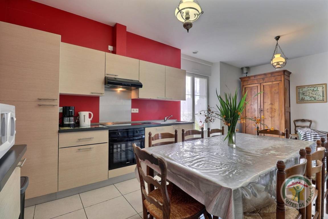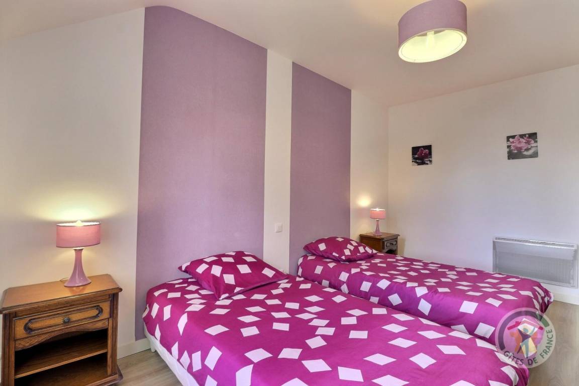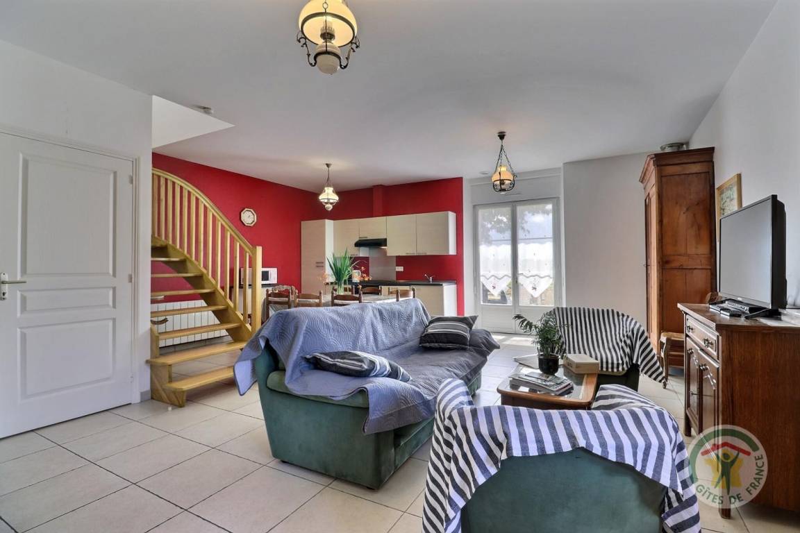 Im Erdgeschoss für Personen mit eingeschränkter Mobilität voll zugänglich: ein Wohnzimmer mit offener Küche zum Wohnzimmer und zum Wohnzimmer, eine Master-Suite mit einem 140-Bett, ein Badezimmer und eine separate Toilette mit Waschmaschine Hand, eine Wäscherei Zimmer. Obergeschoss: Ein Flur führt zu einem Schlafzimmer mit einem 140 cm breiten Bett und zwei Schlafzimmern mit jeweils zwei 90 cm breiten Betten, einem Badezimmer (Doppelwaschbecken), separatem WC mit Waschbecken. Elektroheizung. Draußen: privater Garten, Terrasse mit Gartenmöbeln und Grill, Parkplatz.