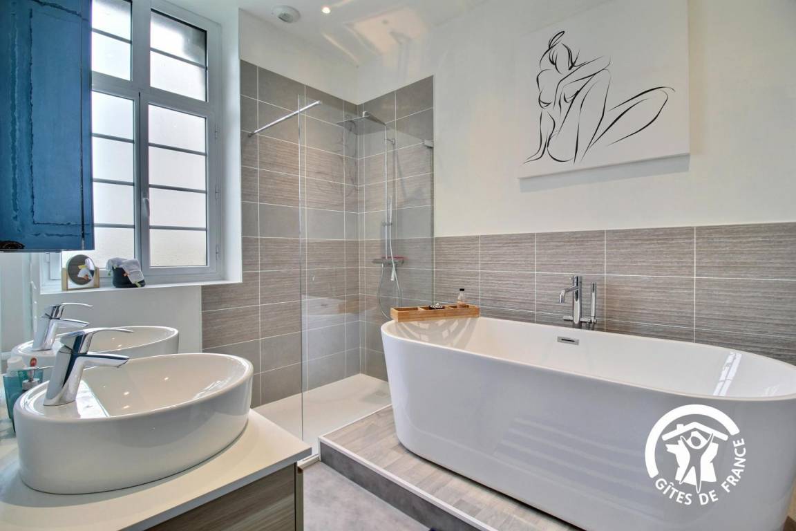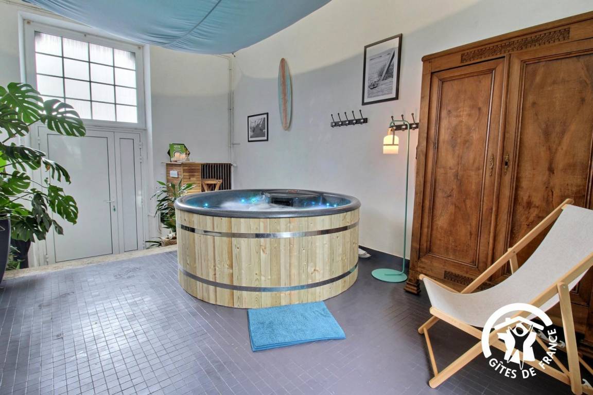 „Le gîte est propre, grand et décoré avec goût. Le jacuzzi est un vrai plus! La terrasse et les différents transats permettent de profiter pleinement de l'extérieur. Le parking pour 3 voitures est sécurisé. La proximité des commerces et de la plage est aussi un atout. Bref, que du positif“