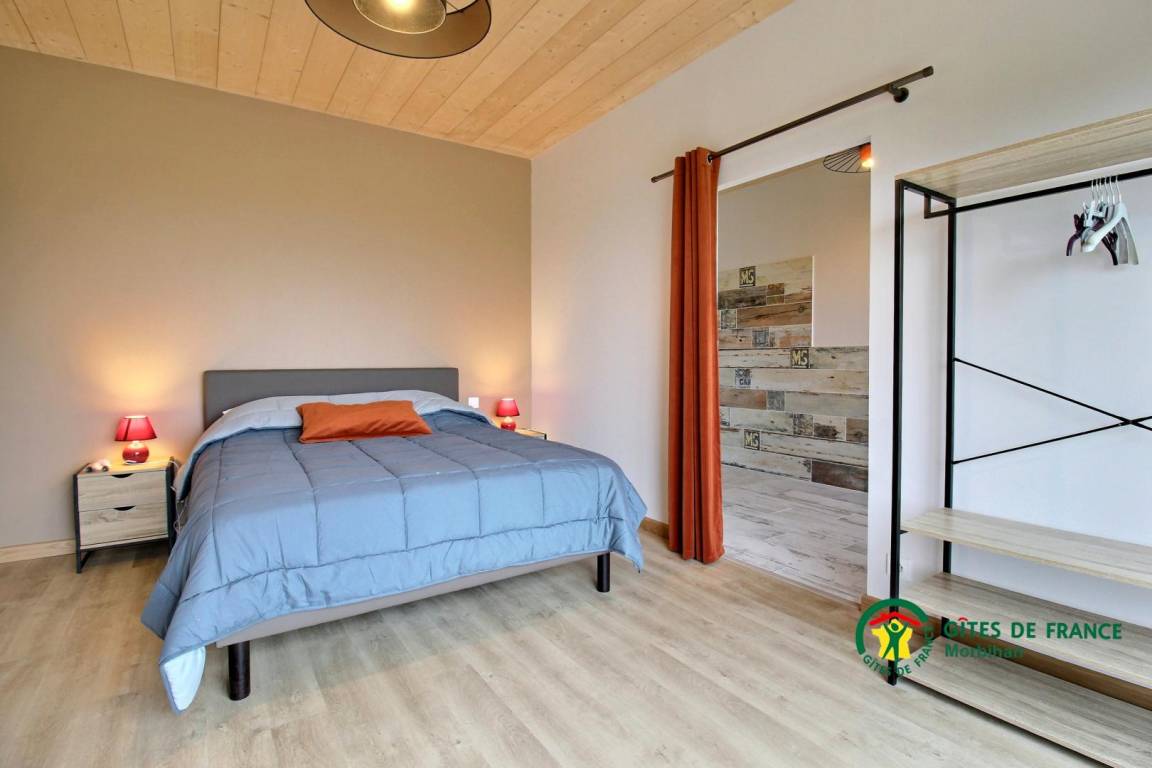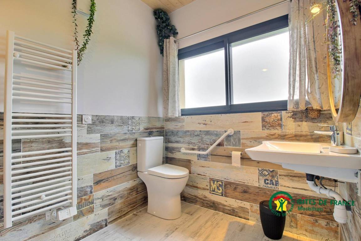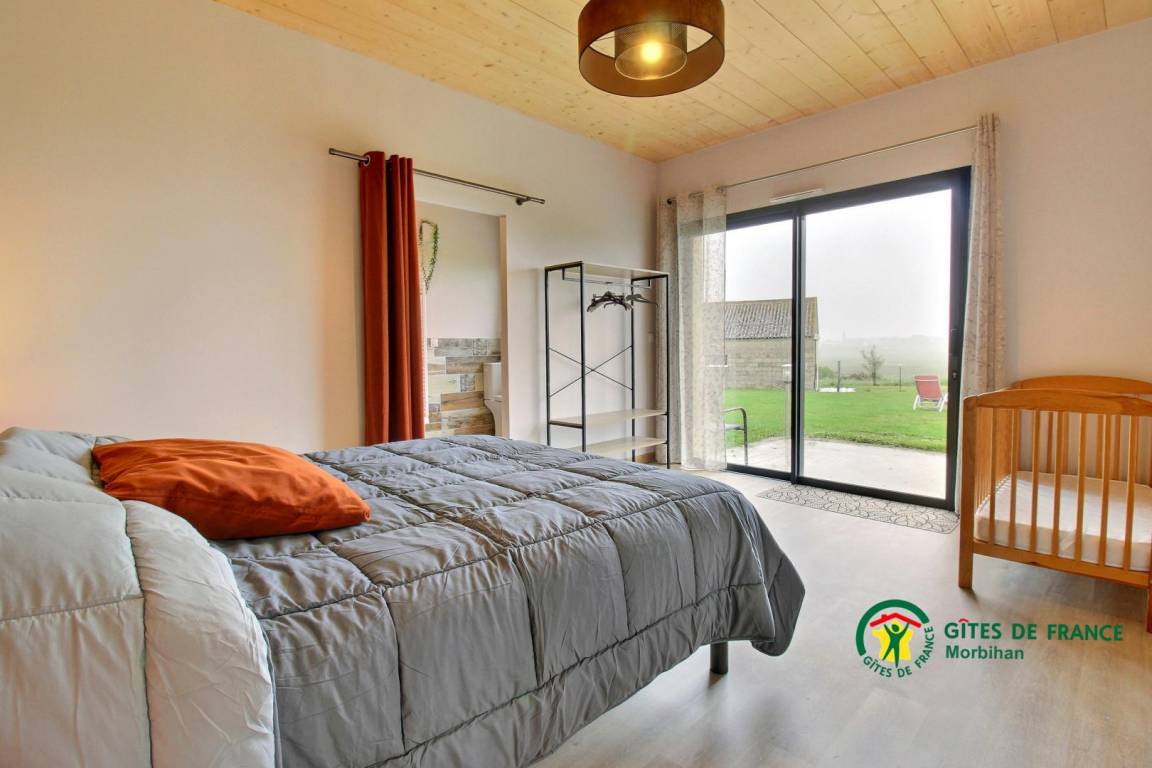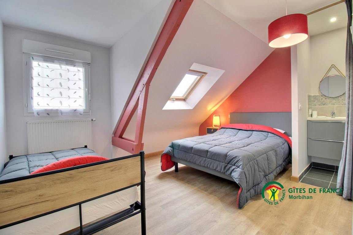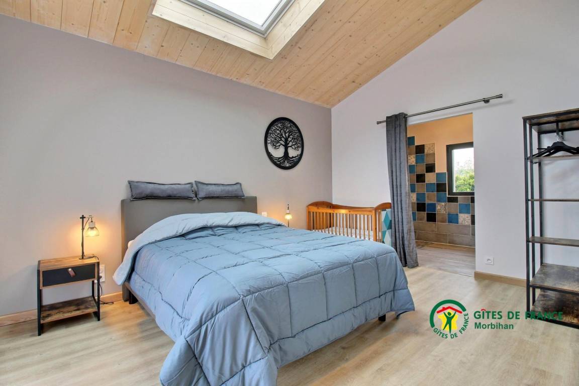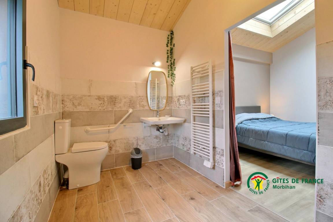 Die Gîte Grand Breizh besteht im Erdgeschoss aus einem großen Wohnzimmer mit einer ausgestatteten Küche, die zum Wohnzimmer/Wohnzimmer hin offen ist, und einer separaten Toilette. Auf derselben Ebene befinden sich 3 PRM-Schlafzimmer mit jeweils eigenem Duschraum + WC. Die ersten beiden mit einem 160x200-Bett, das dritte mit einem 160x200-Bett und einem 90x200-Bett. Im Obergeschoss befindet sich ein Badezimmer, eine separate Toilette und 3 Schlafzimmer. Ein Schlafzimmer mit einem 140x190 Bett + einem 90x200 Bett und einem eigenen Badezimmer. Ein Schlafzimmer mit 4 Betten 90x200, davon ein Etagenbett. Ein Schlafzimmer mit einem 140x190 Bett.