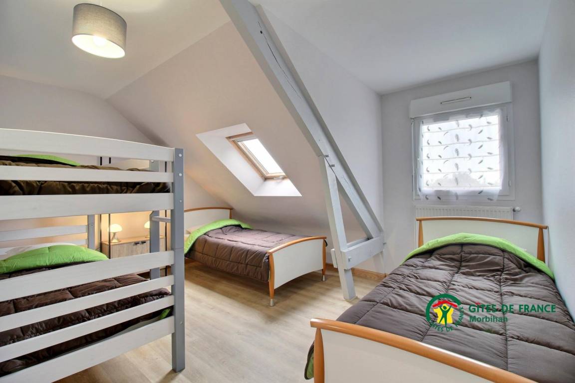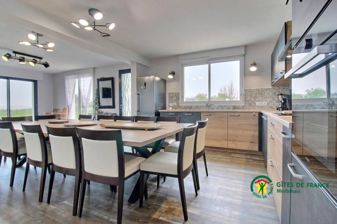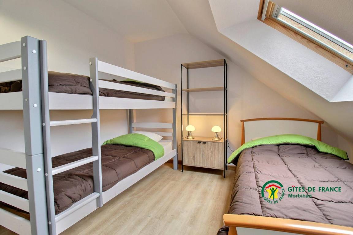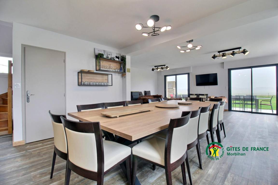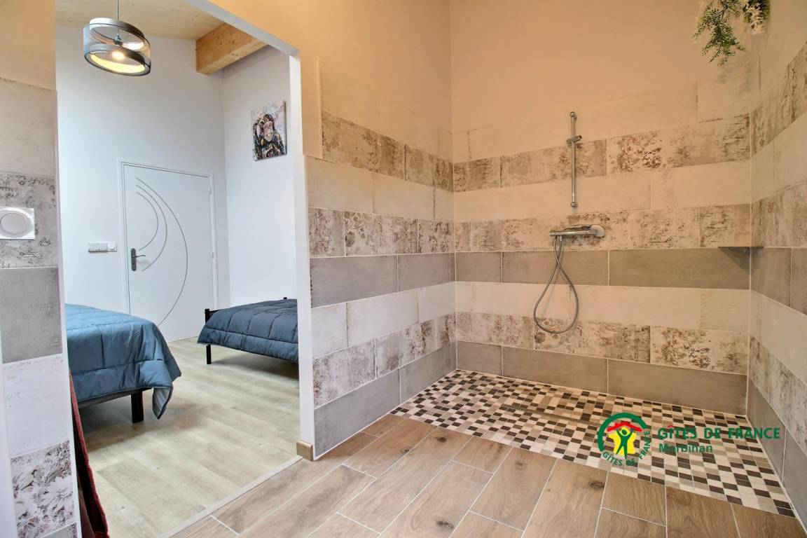 Die Gîte Grand Breizh besteht im Erdgeschoss aus einem großen Wohnzimmer mit einer ausgestatteten Küche, die zum Wohnzimmer/Wohnzimmer hin offen ist, und einer separaten Toilette. Auf derselben Ebene befinden sich 3 PRM-Schlafzimmer mit jeweils eigenem Duschraum + WC. Die ersten beiden mit einem 160x200-Bett, das dritte mit einem 160x200-Bett und einem 90x200-Bett. Im Obergeschoss befindet sich ein Badezimmer, eine separate Toilette und 3 Schlafzimmer. Ein Schlafzimmer mit einem 140x190 Bett + einem 90x200 Bett und einem eigenen Badezimmer. Ein Schlafzimmer mit 4 Betten 90x200, davon ein Etagenbett. Ein Schlafzimmer mit einem 140x190 Bett.