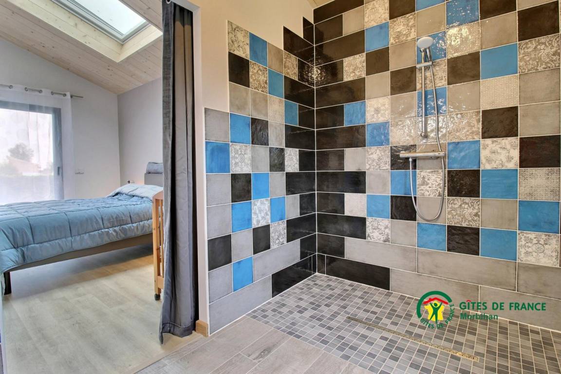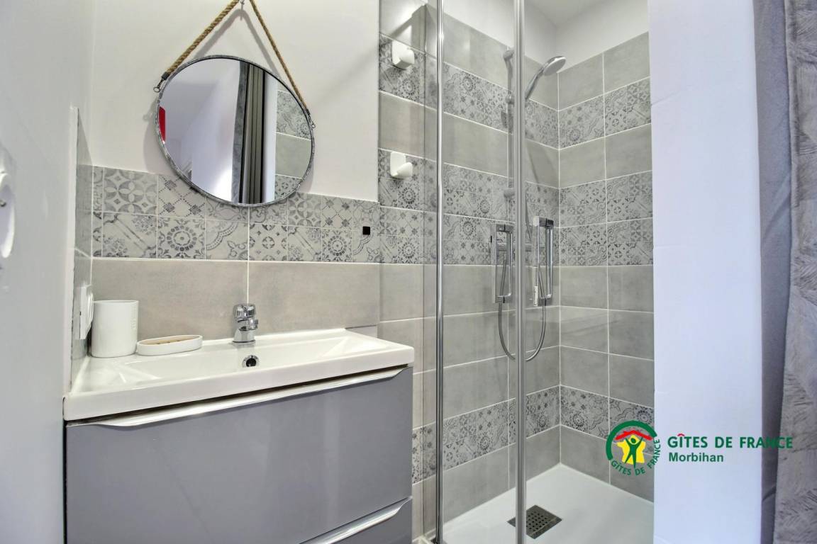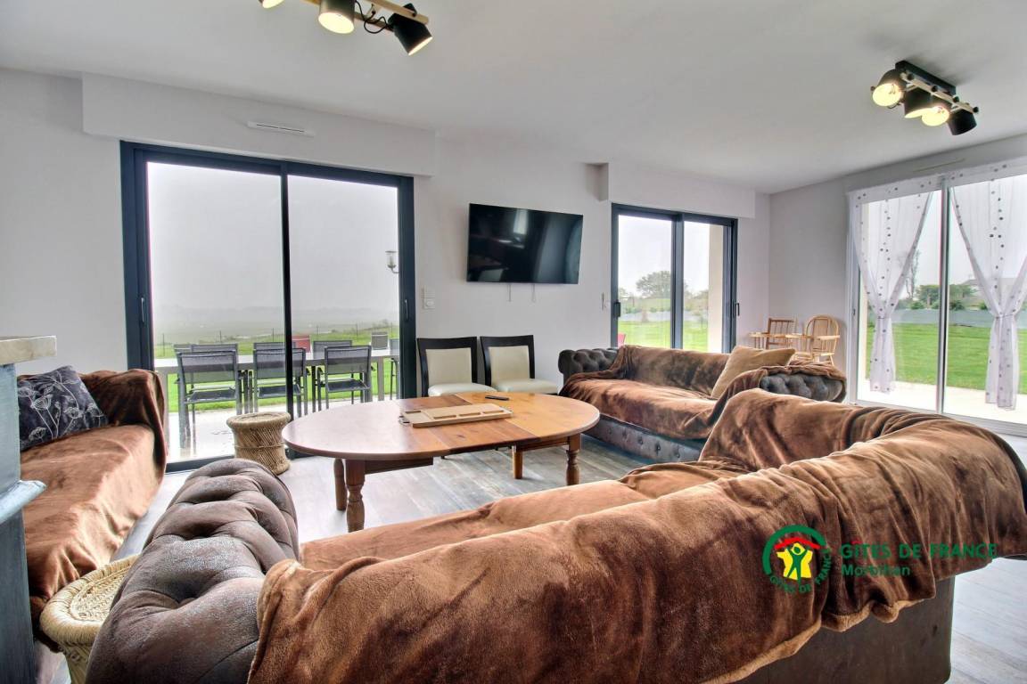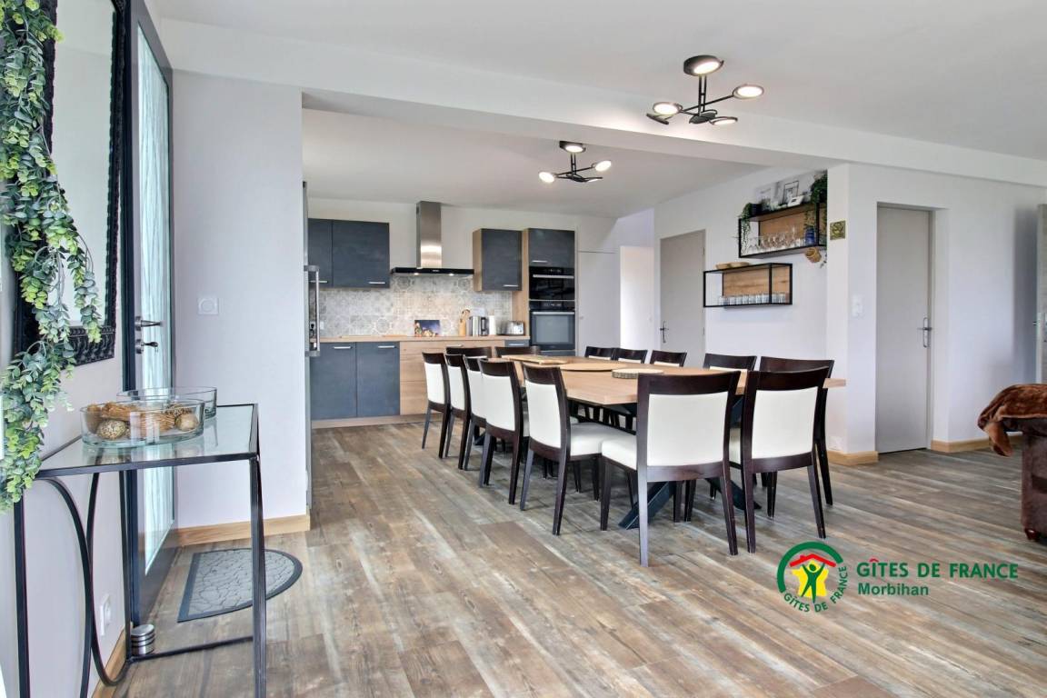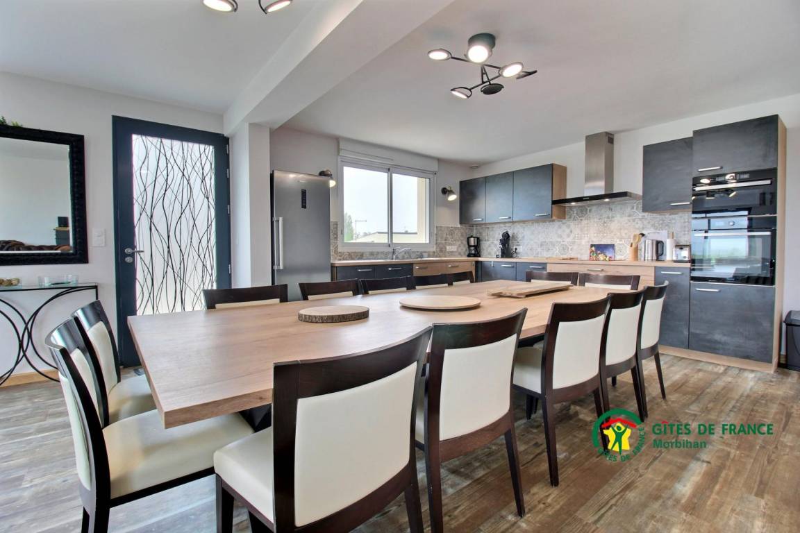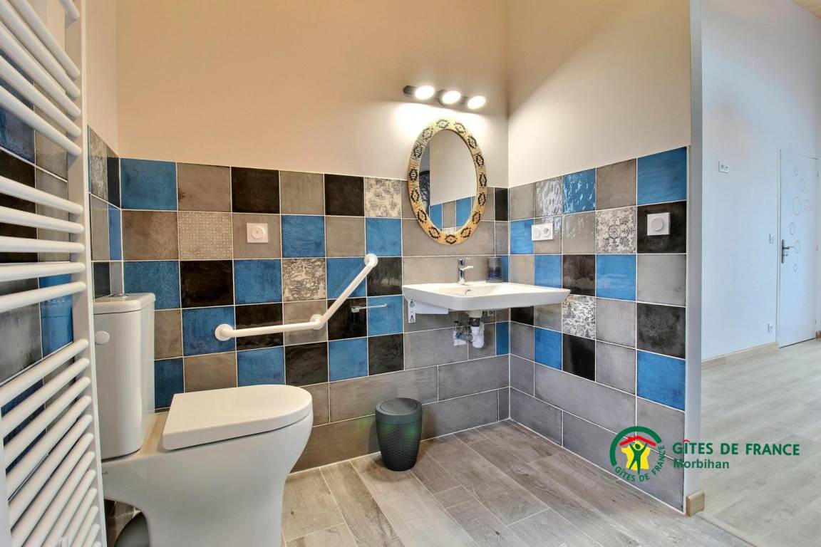 Die Gîte Grand Breizh besteht im Erdgeschoss aus einem großen Wohnzimmer mit einer ausgestatteten Küche, die zum Wohnzimmer/Wohnzimmer hin offen ist, und einer separaten Toilette. Auf derselben Ebene befinden sich 3 PRM-Schlafzimmer mit jeweils eigenem Duschraum + WC. Die ersten beiden mit einem 160x200-Bett, das dritte mit einem 160x200-Bett und einem 90x200-Bett. Im Obergeschoss befindet sich ein Badezimmer, eine separate Toilette und 3 Schlafzimmer. Ein Schlafzimmer mit einem 140x190 Bett + einem 90x200 Bett und einem eigenen Badezimmer. Ein Schlafzimmer mit 4 Betten 90x200, davon ein Etagenbett. Ein Schlafzimmer mit einem 140x190 Bett.