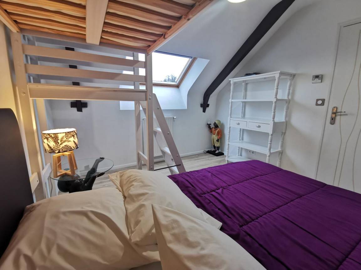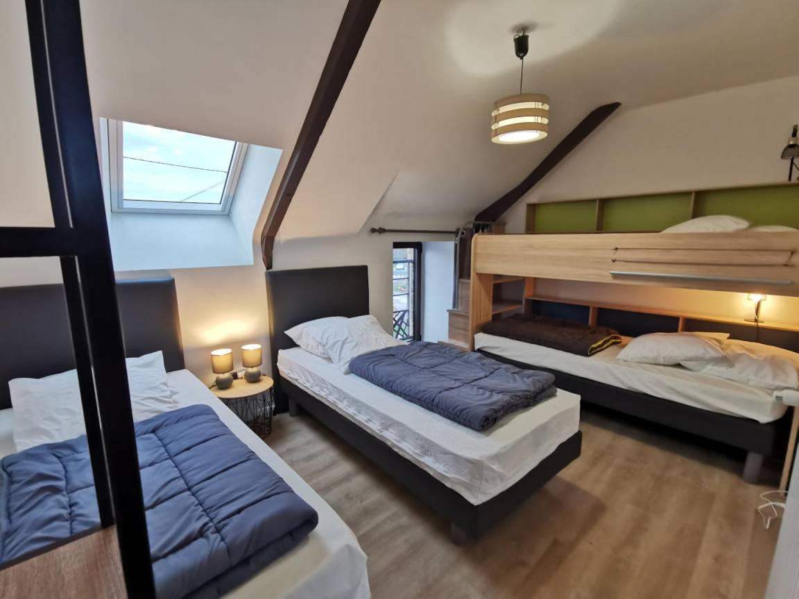 - Auf der 1. Etage finden Sie 4 Schlafzimmer: 2 Schlafzimmer mit jeweils 1 Bett 140 und eigenem Bad. Ein Schlafzimmer mit einem 140er Bett und einem 90er Etagenbett. Ein Dreibettzimmer mit einem 90-cm-Bett und 2 90-cm-Etagenbetten. Ein Badezimmer für den Boden, separates WC.