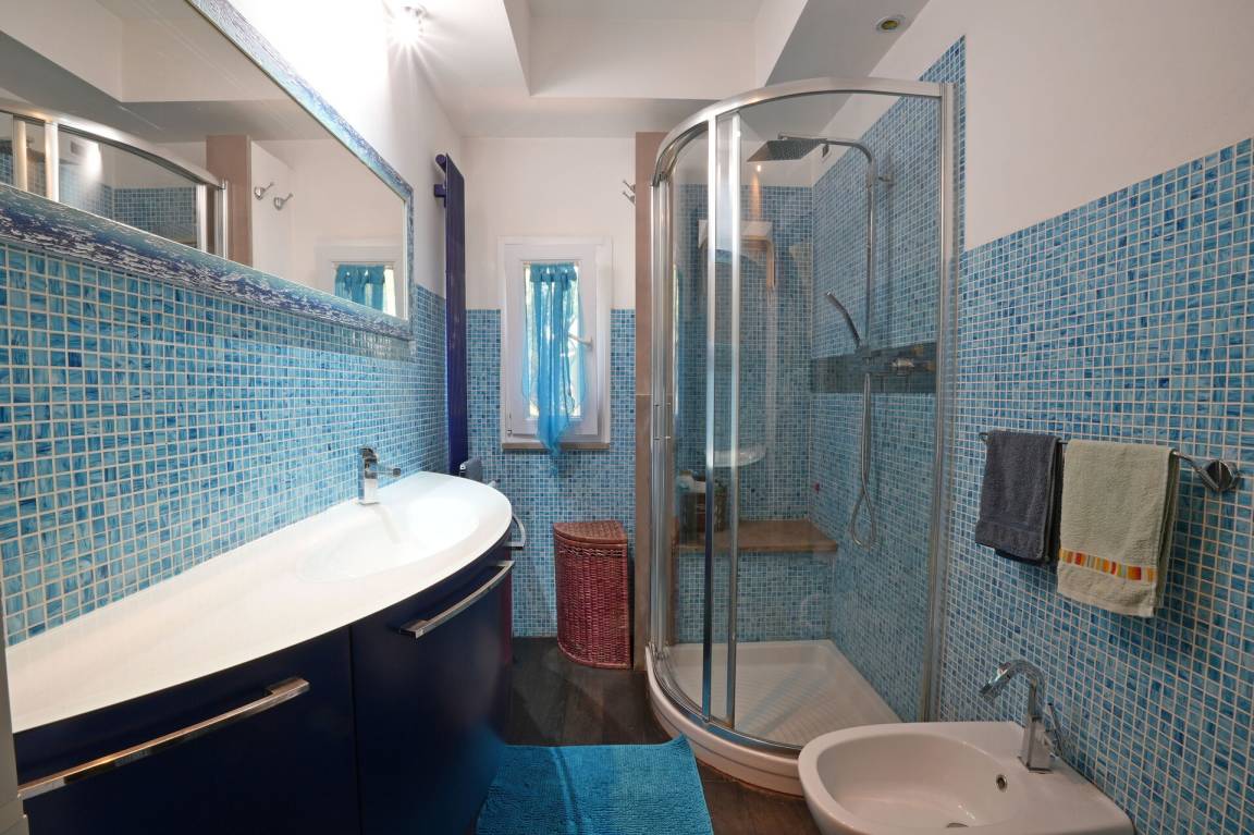 Badezimmer 2: Waschbecken, WC, Bidet, Dusche.