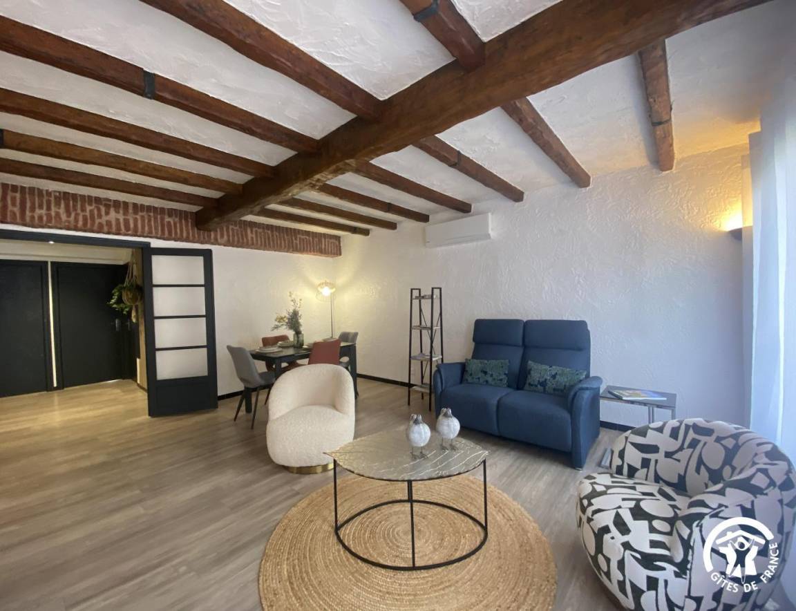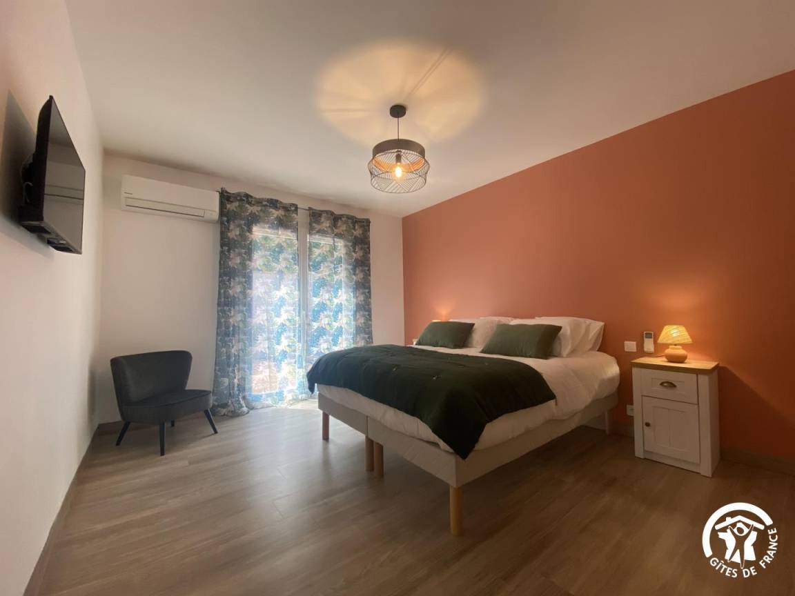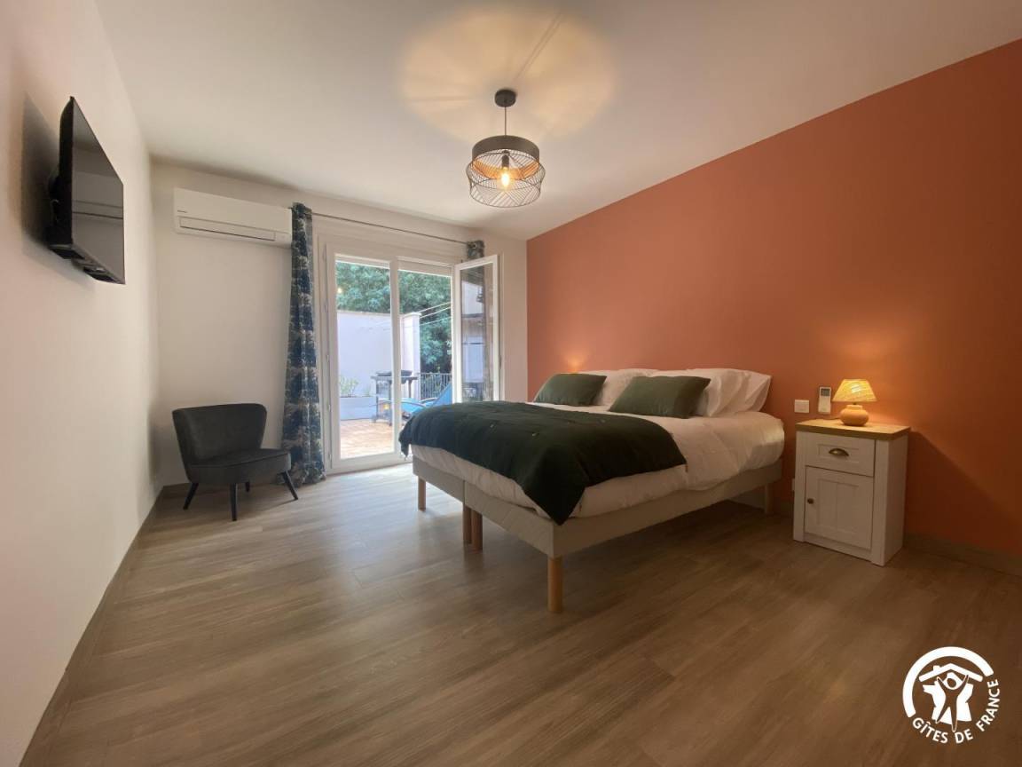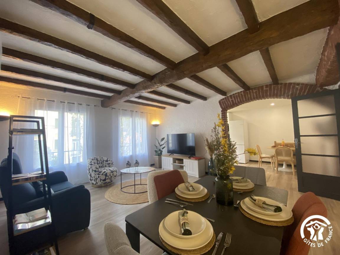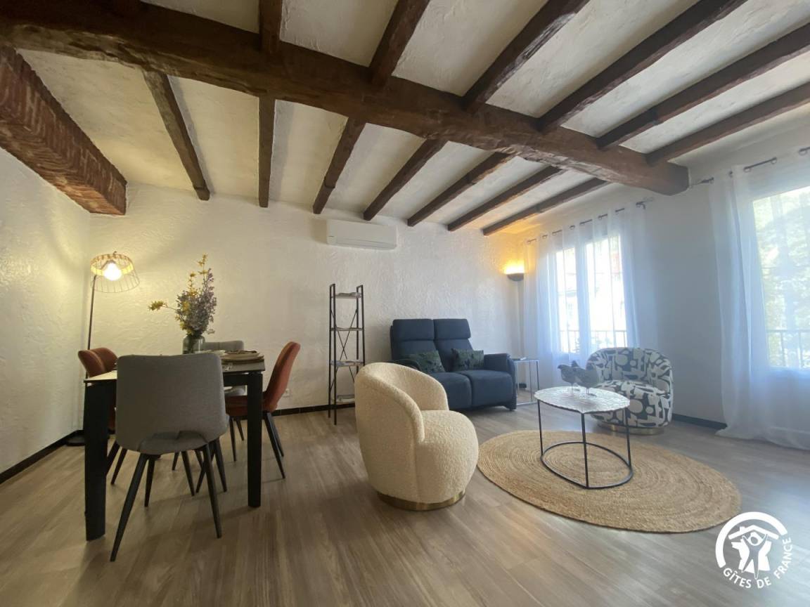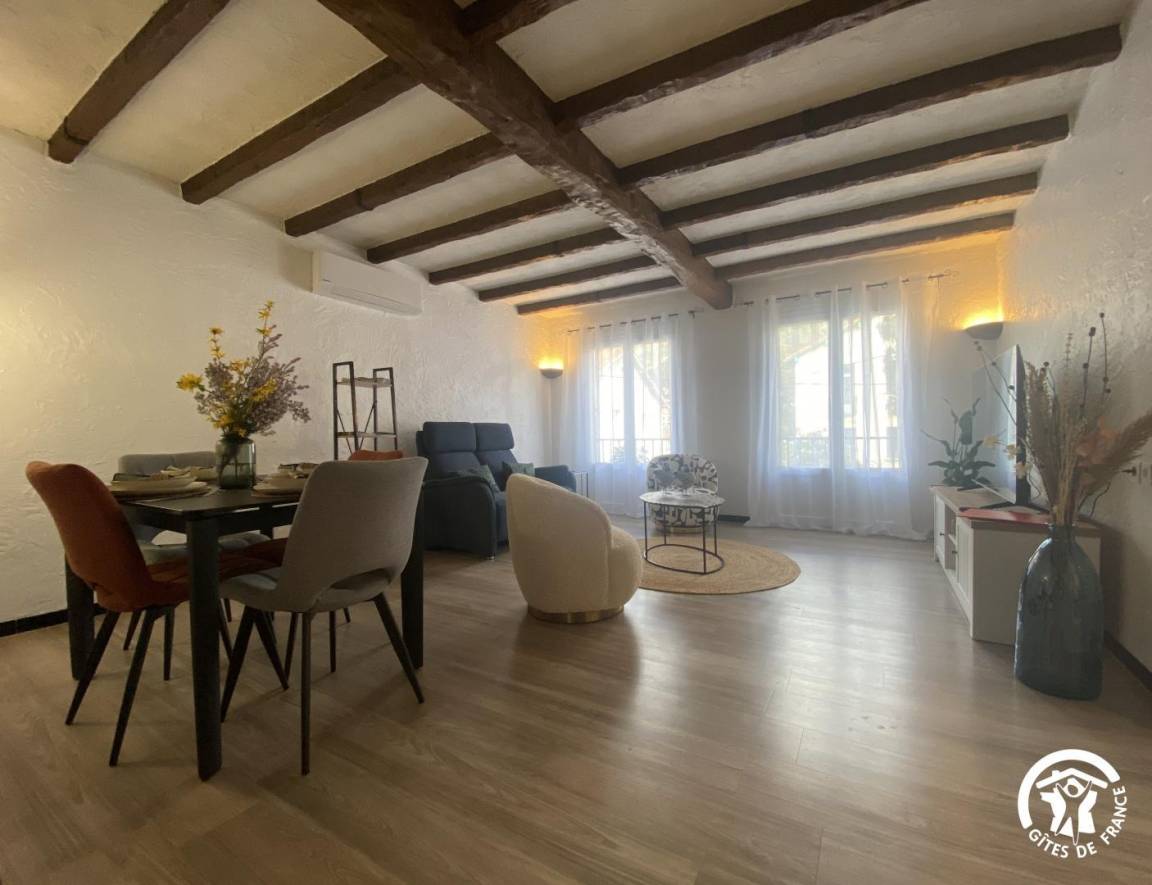 „Nous sommes ravis de notre séjour de curistes âgés. L'appartement spacieux et très bien agencé. D'une propreté remarquable et très fonctionnel. L'accueil des propriétaires parfait et toujours à l'écoute de nos besoins. Nous nous sommes sentis comme à la maison. L'accessibilité à l'appartement malgré ses 7 marches n'est pas un problème pour 4 anciens (70/80 ans) et la vie dans l'appartement avec ses deux grandes chambres avec lits XL, hauts et des matelas très confortables, ainsi qu'une belle salle de bain 2 vasques et douche italienne, une salle à manger/salon très bien agencés et une cuisine tout confort avec une table bien adaptée pour les repas. Vaisselle, articles de cuisson, cafetières, bouilloire,...tout ce qui est nécessaire à une vie pratique et de vacanciers/curistes. A noter une télévision dans chaque chambre et une grande dans le salon facilitent la cohabitation de deux couples aux rythmes différents. L'accueil de notre chien Tyrion sympa, les gamelles l'attendaient et la terrasse plein sud avec chaises longues, grande table de jardin, barbecue...PARFAIT pour le repos et la détente et les repas entre amis. Merci à Jean et Nora pour leur disponibilité et leur accueil. Nous y reviendrons avec grand plaisir. Les 4 curistes et Tyrion“