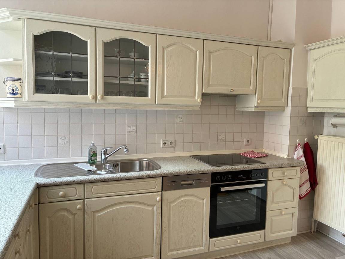 Sie ist 100qm groß, befindet sich im Hochparterre und zeichnet sich durch ein gemütliches Wohnzimmer und einer Küche mit Sitzecke aus. Das Badezimmer der Wohnung ist kernsaniert, modern und mit einer Dusche ausgestattet. Ebenso sind zwei gemütlich eingerichtete Schlafzimmern vorhanden.